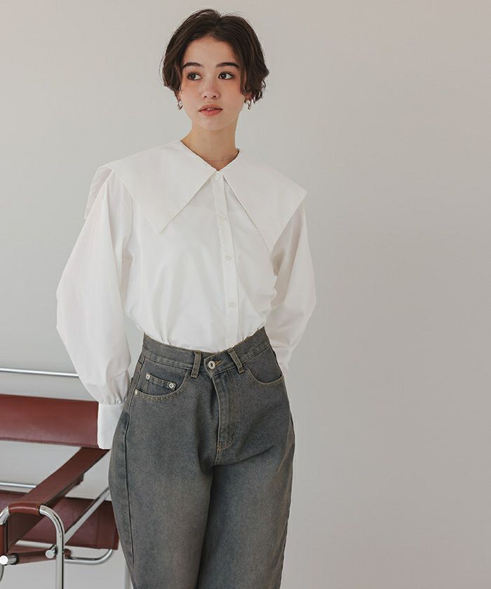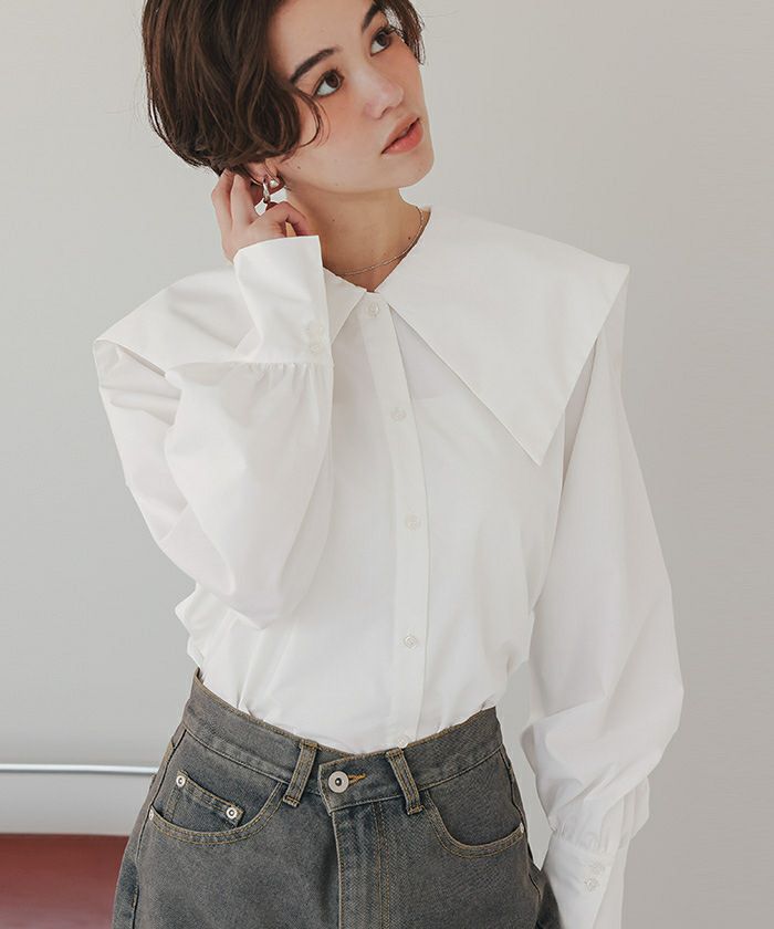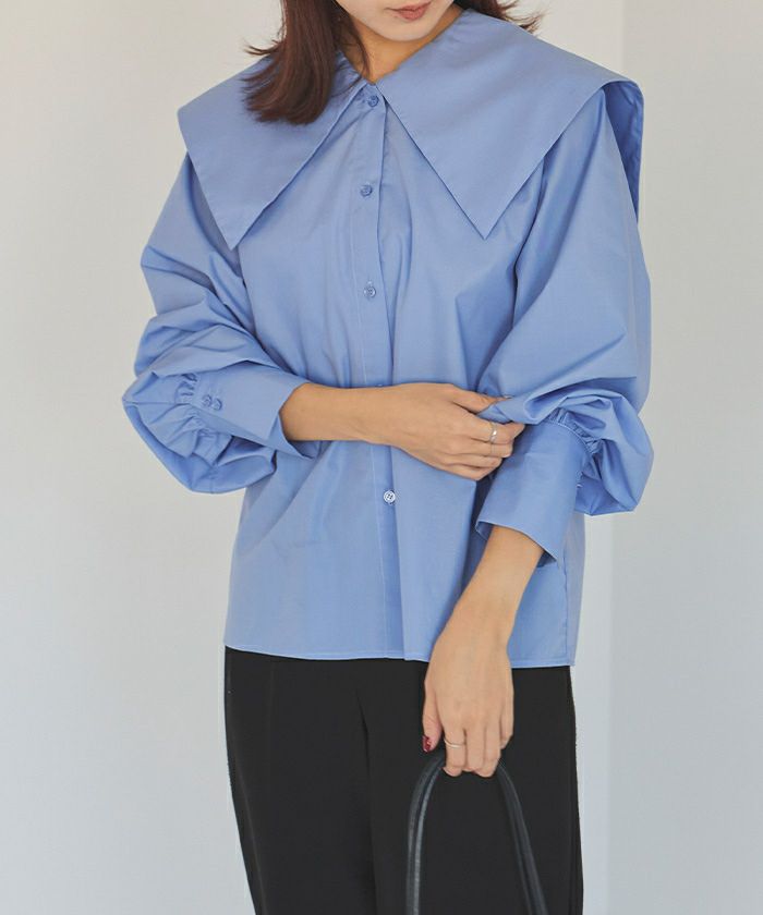 ・トレンドにもぴったりなBIG襟がポイントのブラウス。