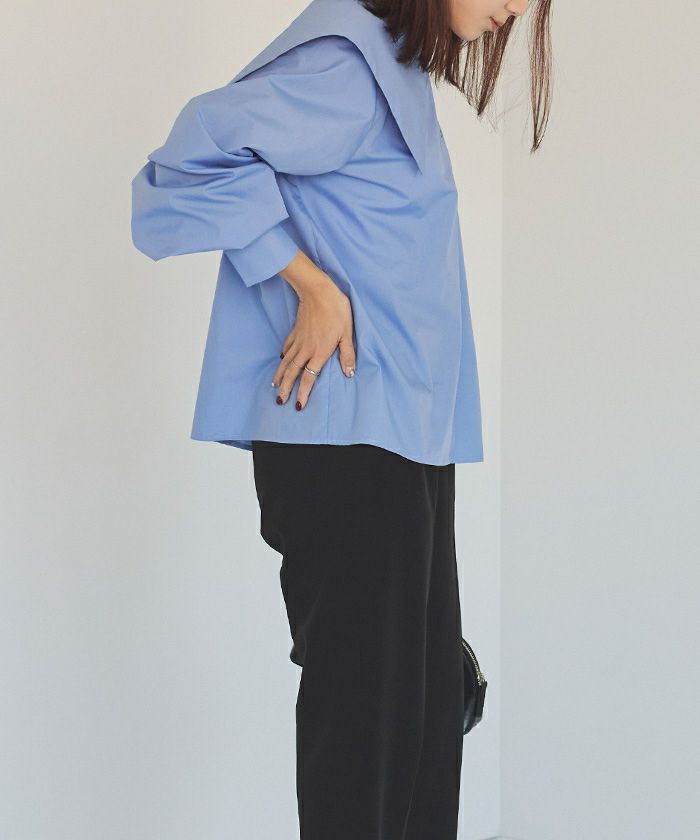 ・ベーシックなシャツブラウスながらも襟ディテールが目を引き、存在感のある1枚に◎