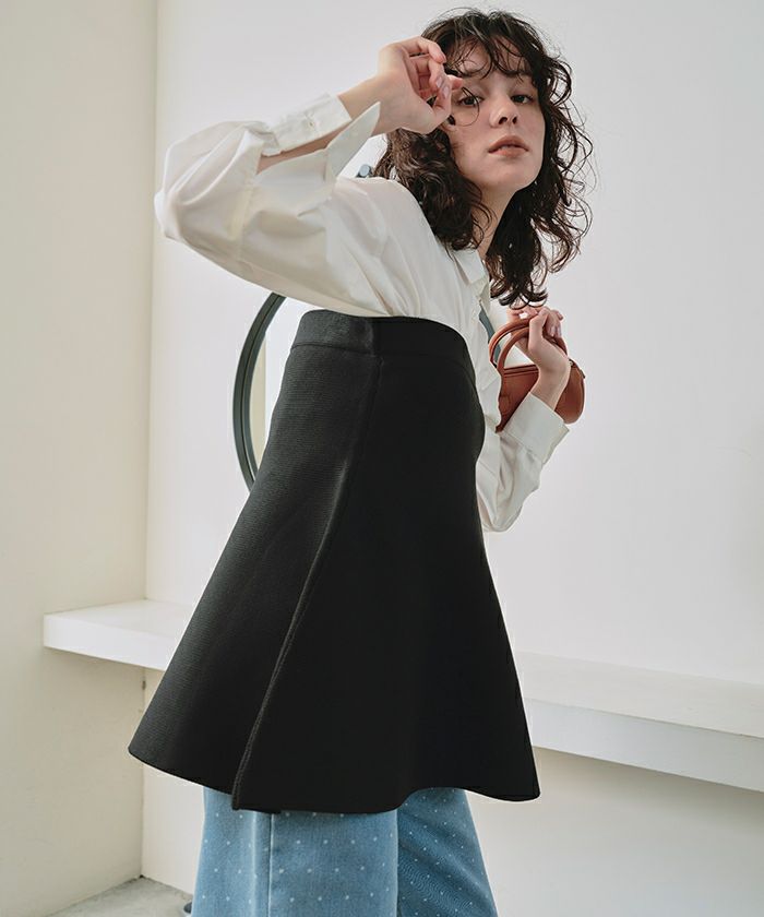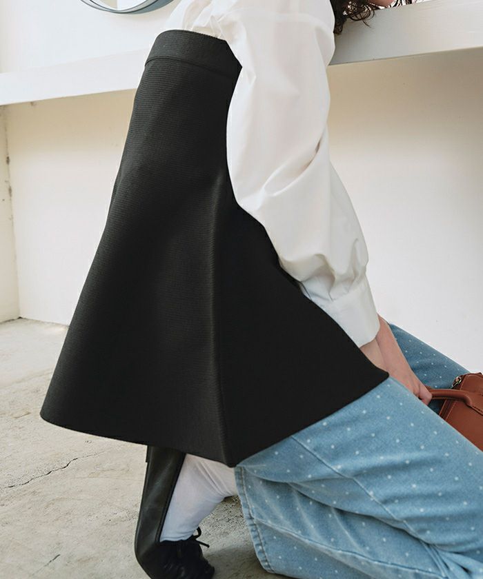 ・しっかりとしたハリ感のある編地で編んでいるので、フレアのシルエットがきちんと出て、形の安定性もあります。
