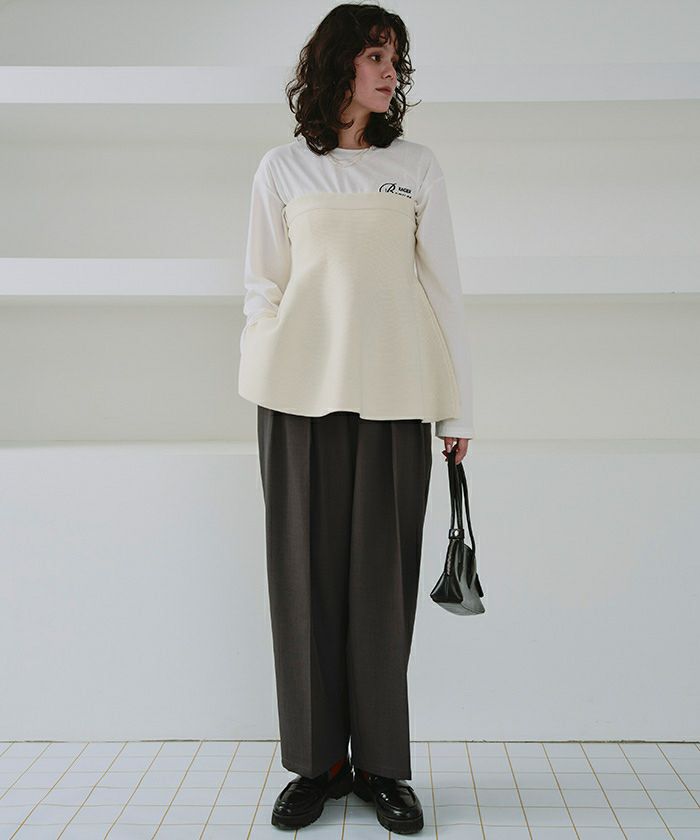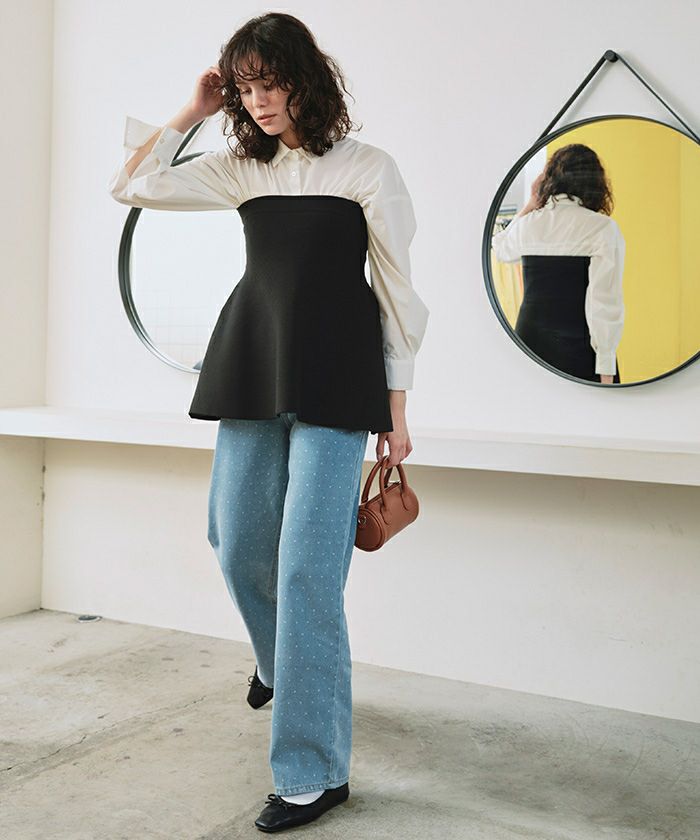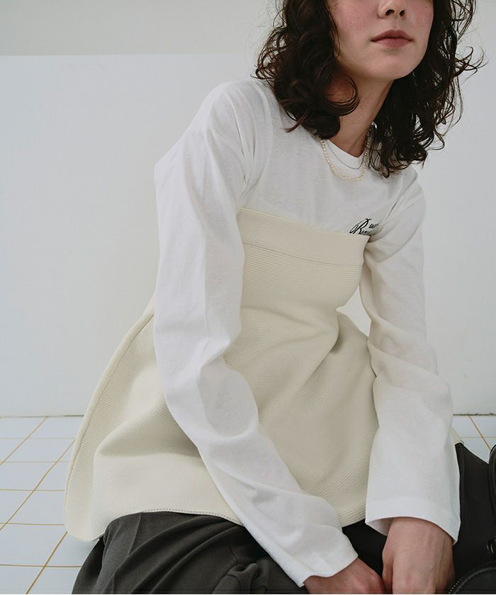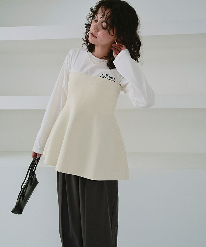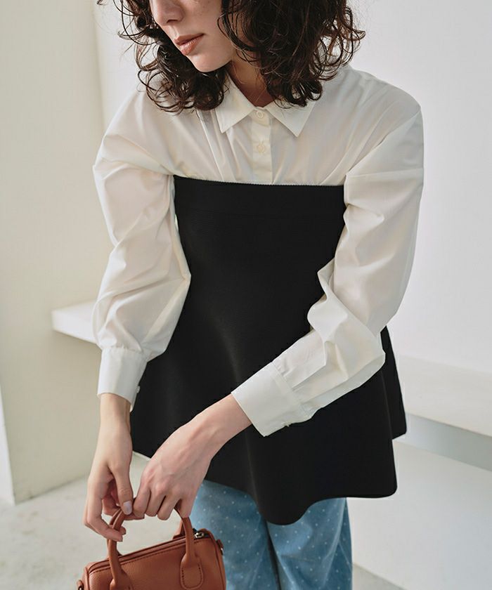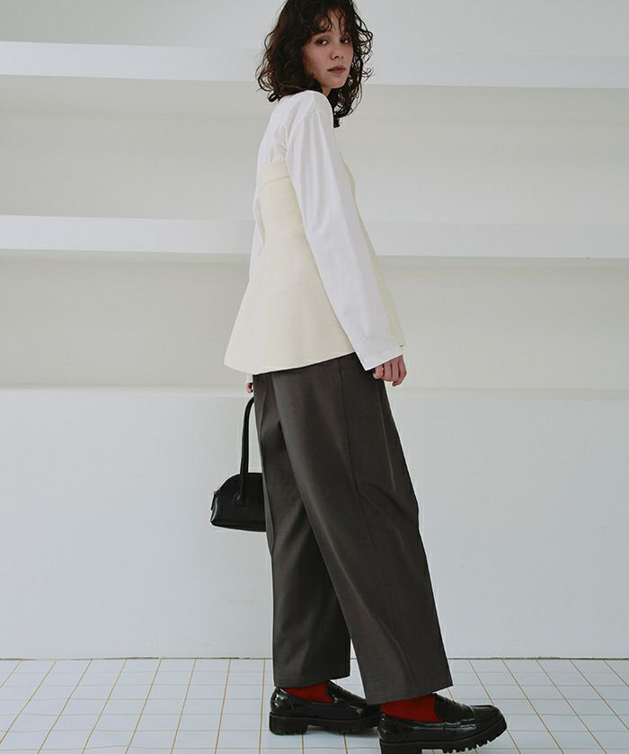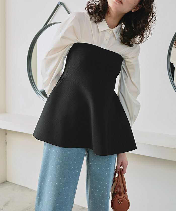 ・ペプラムシルエットが女性らしいニットビスチェ。身頃部分はフィット、フレアシルエットは体型カバーもしてくれ、スタイルアップ効果も◎