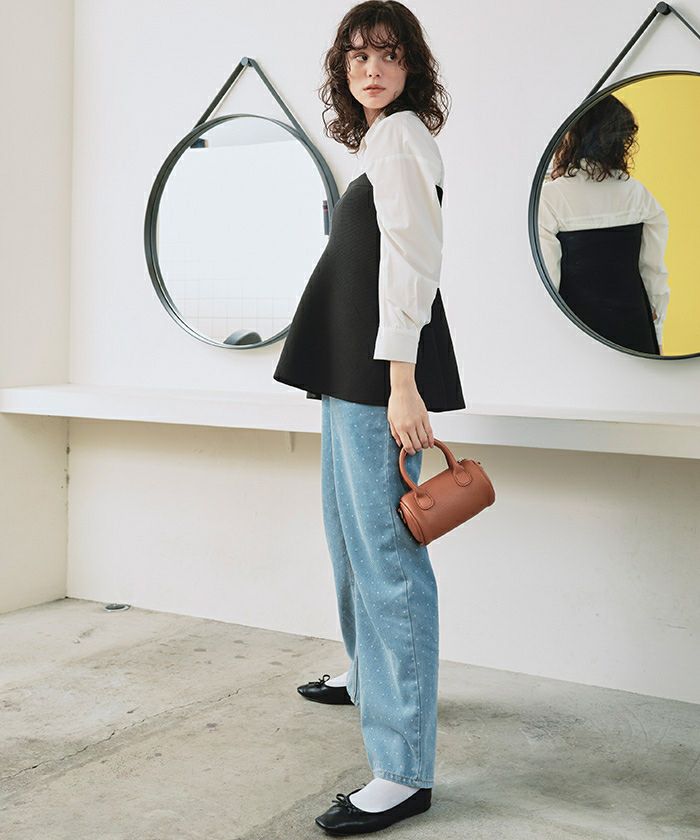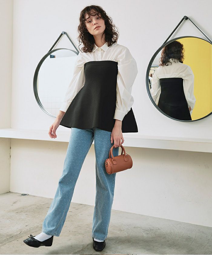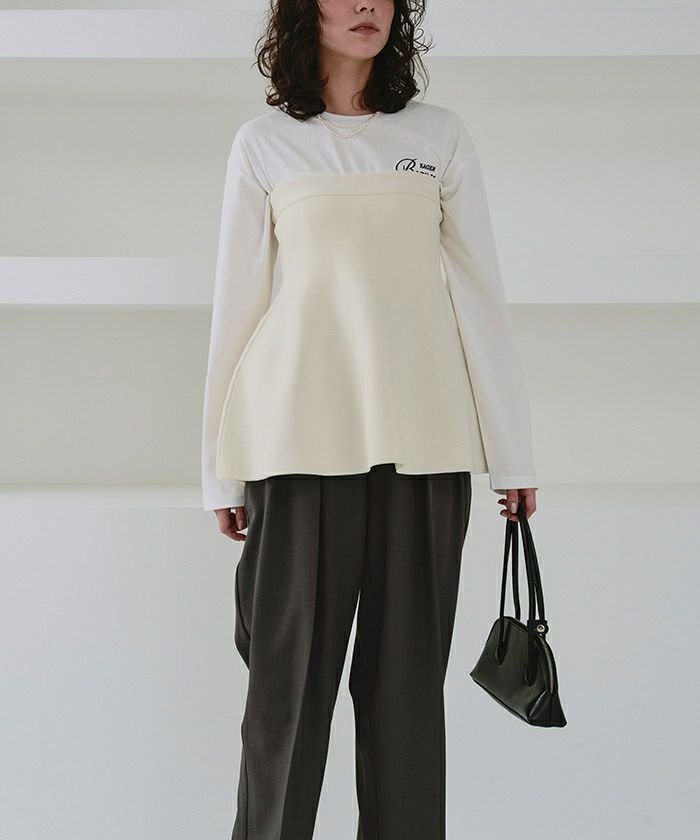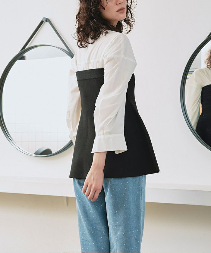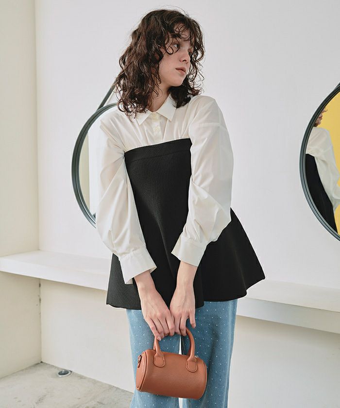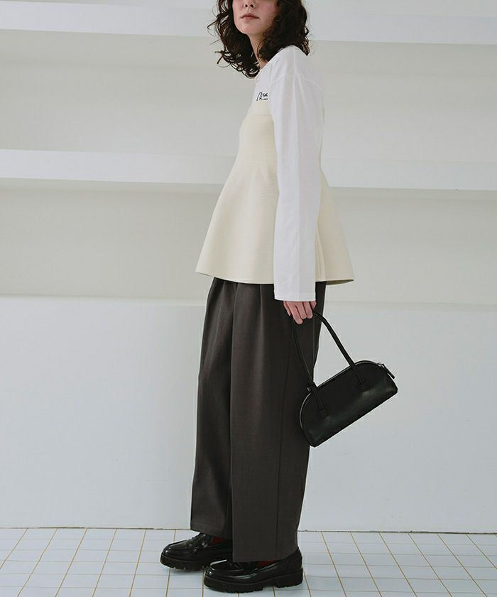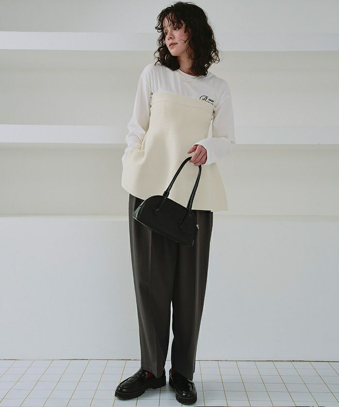 ・ペプラムシルエットが女性らしいニットビスチェ。身頃部分はフィット、フレアシルエットは体型カバーもしてくれ、スタイルアップ効果も◎