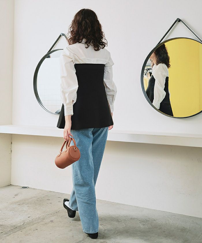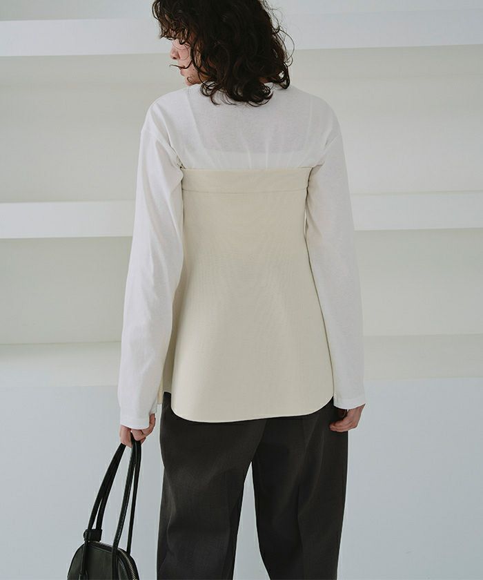 ・お手持ちのTシャツ、ブラウスにレイヤードするだけでトレンド感あるスタイリングに。