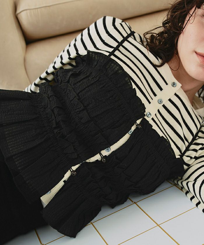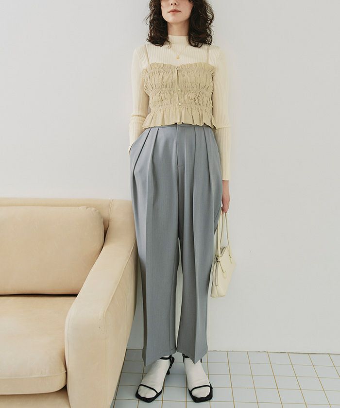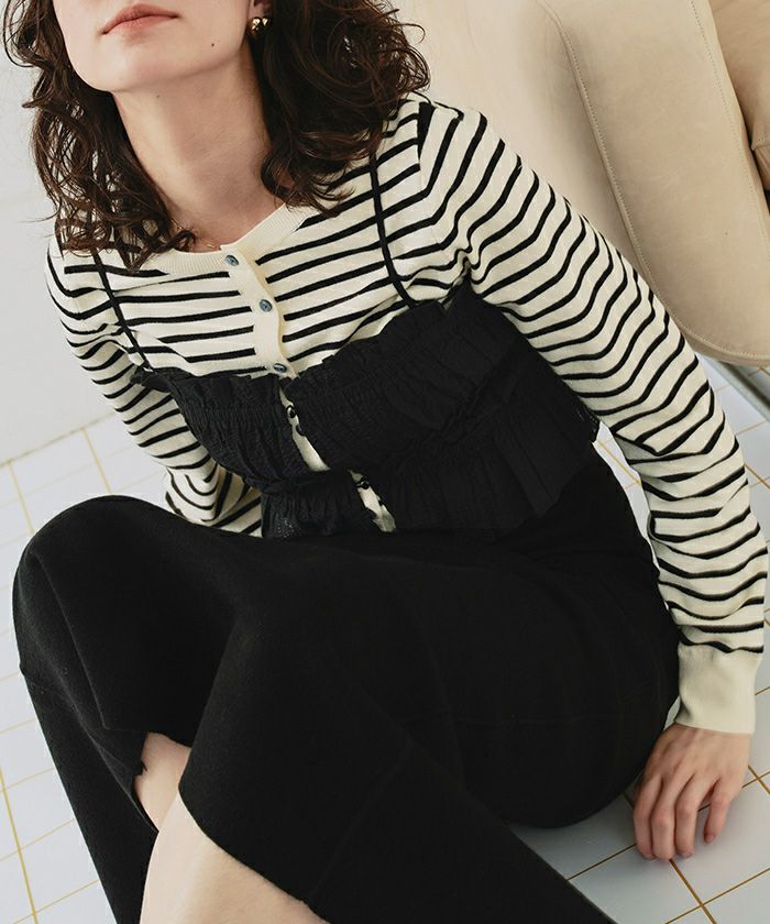 ・シンプルなトップスにレイヤードするだけでもこなれ感のあるスタイリングにアップデート。