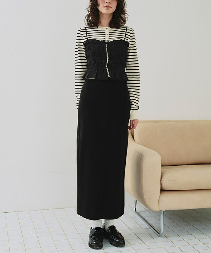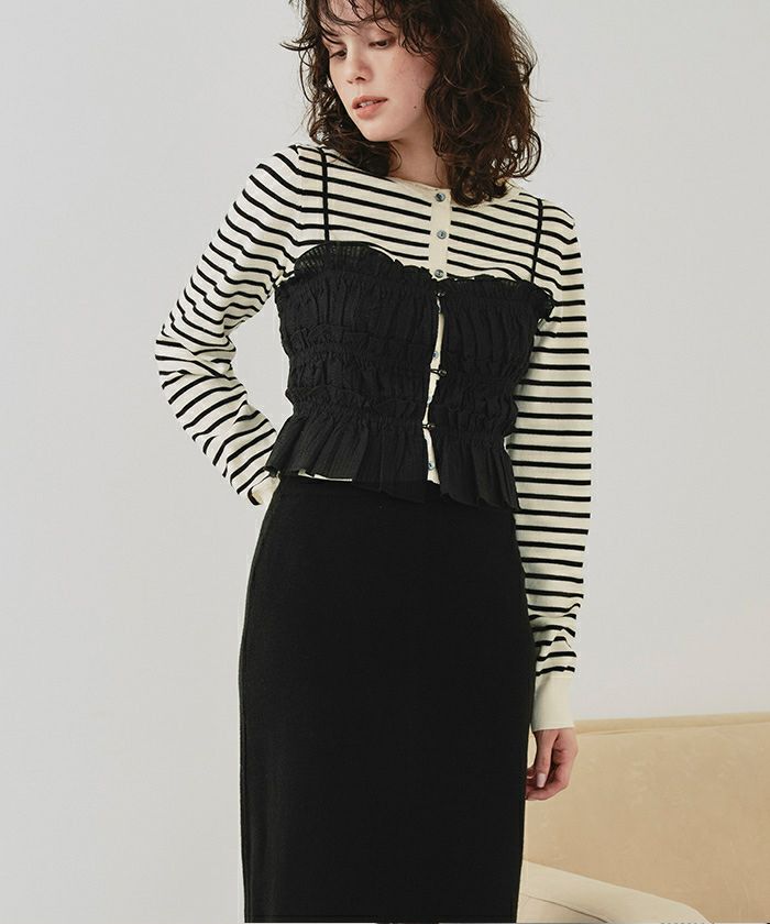 ・サッカーストライプ生地を使ったシャーリングキャミソールビスチェ。