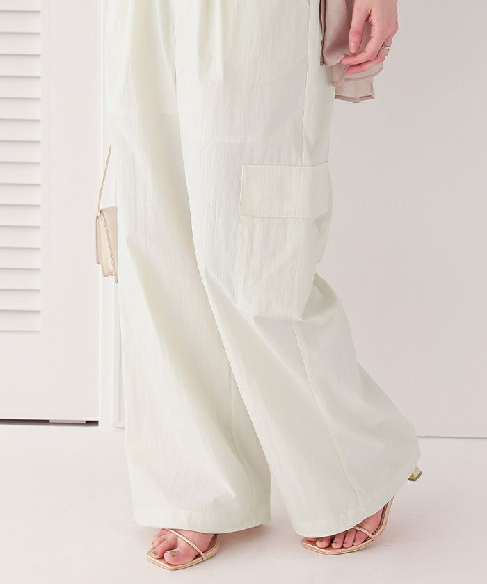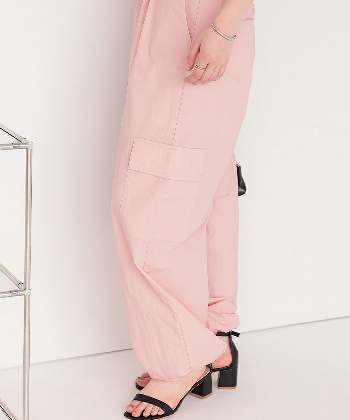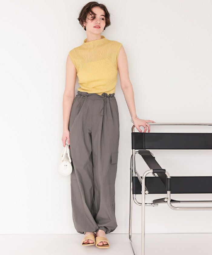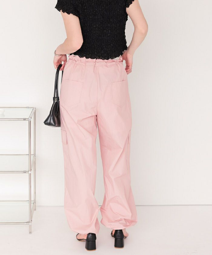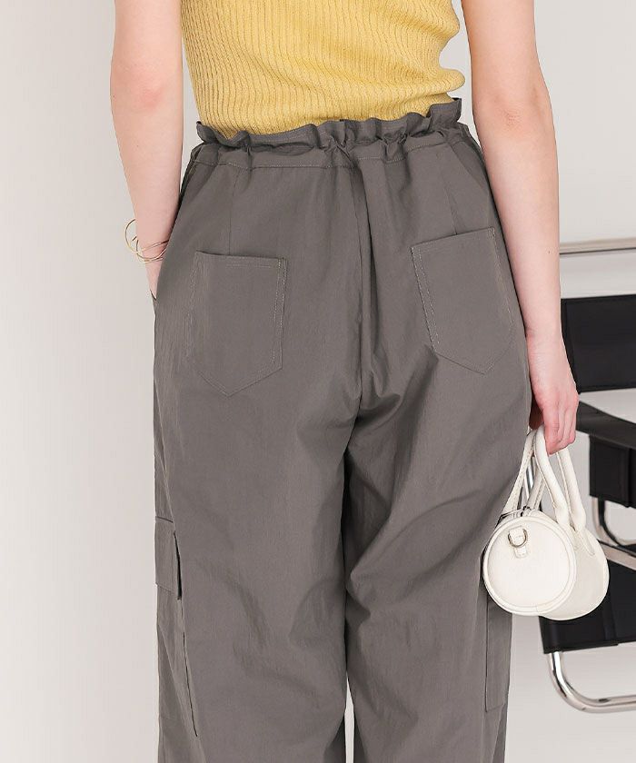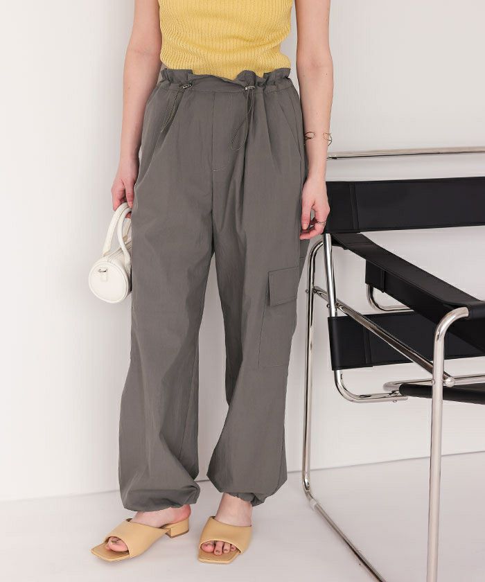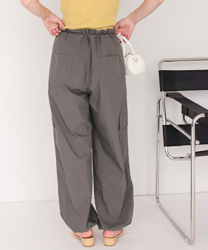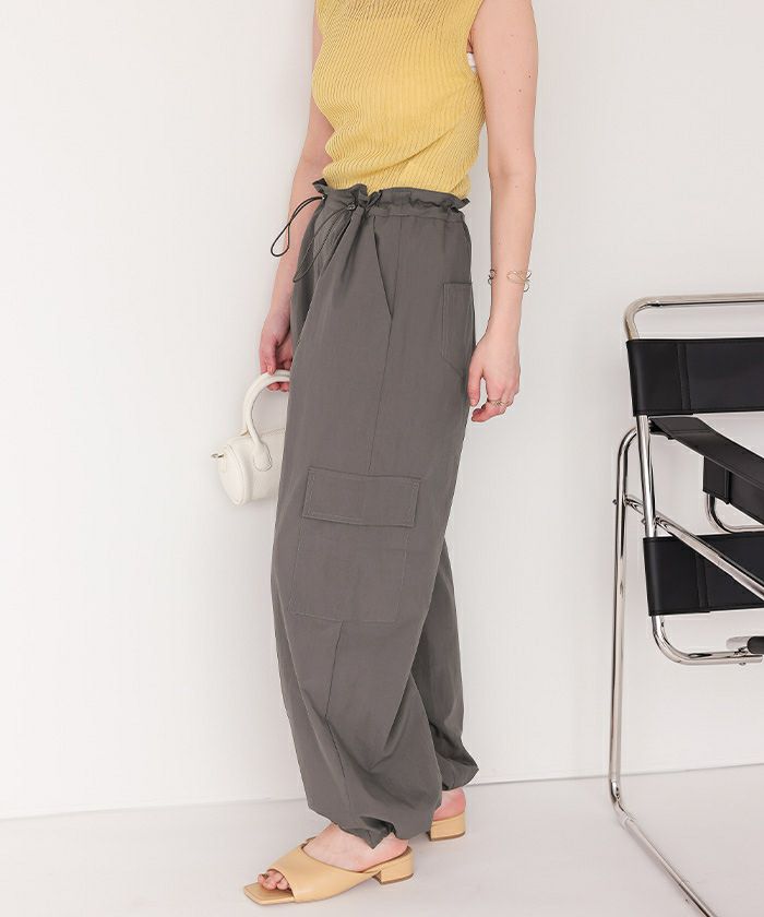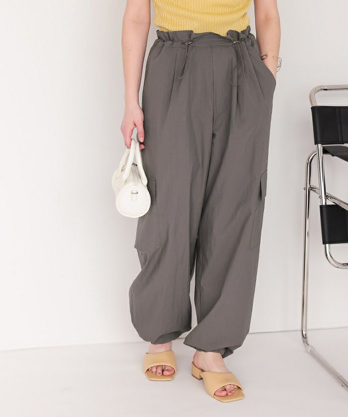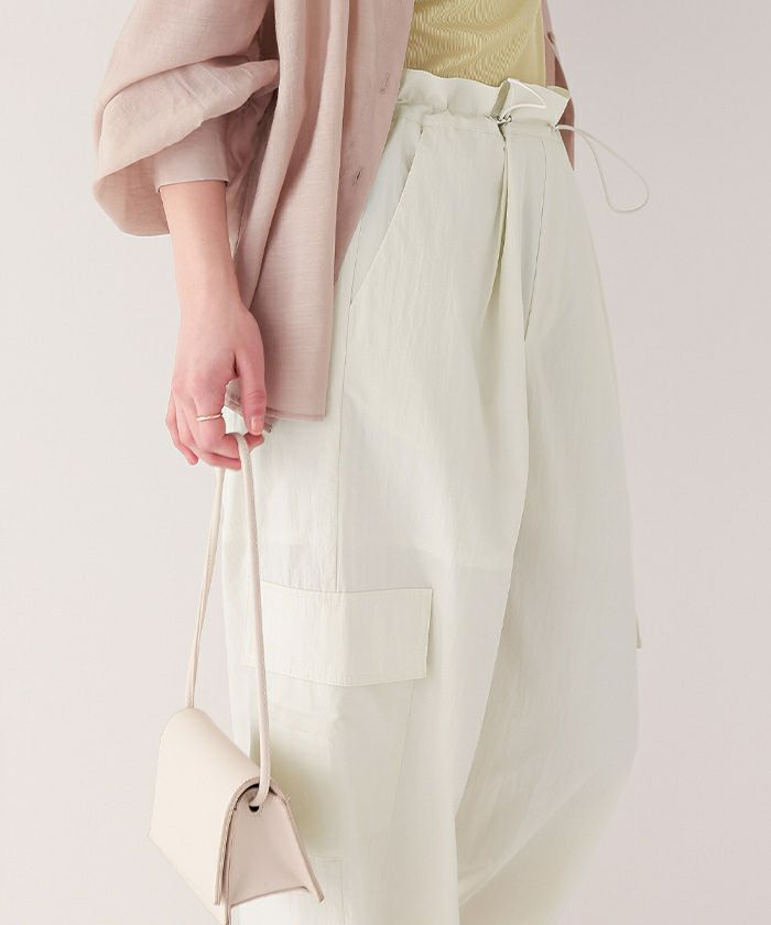 ・裾にもドロストゴムを内蔵しているので、裾をキュッと絞ってメリハリのあるシルエットにも、ゴムを伸ばせばワイドラインのパンツとしても着用頂けます。