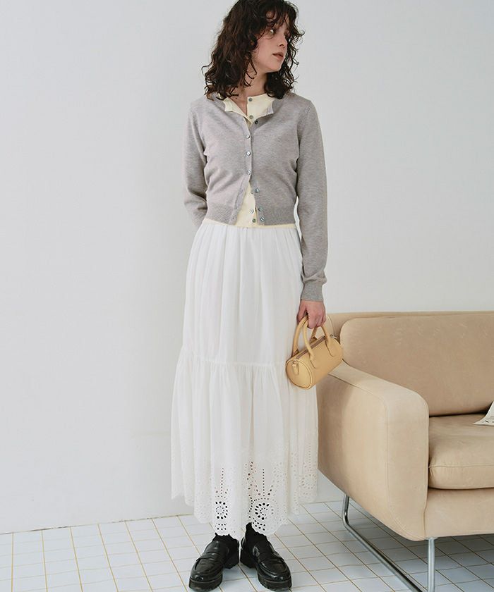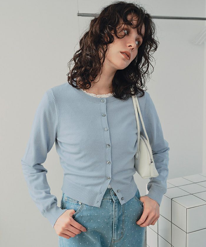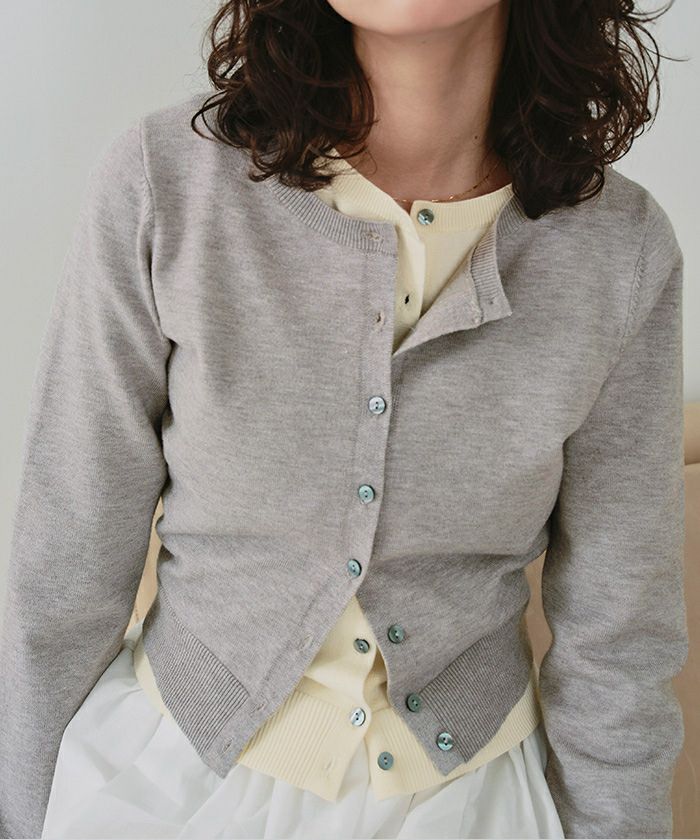 インスタライブでカーディガンをレイヤードして着用しているのを拝見してグレーとアイボリーを購入しました! レイヤードする発想はなかったのですが着てみるととてもおしゃれでした! 単品でもたくさん使えそうです。