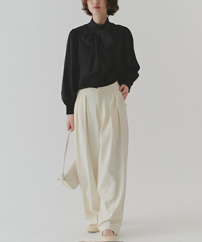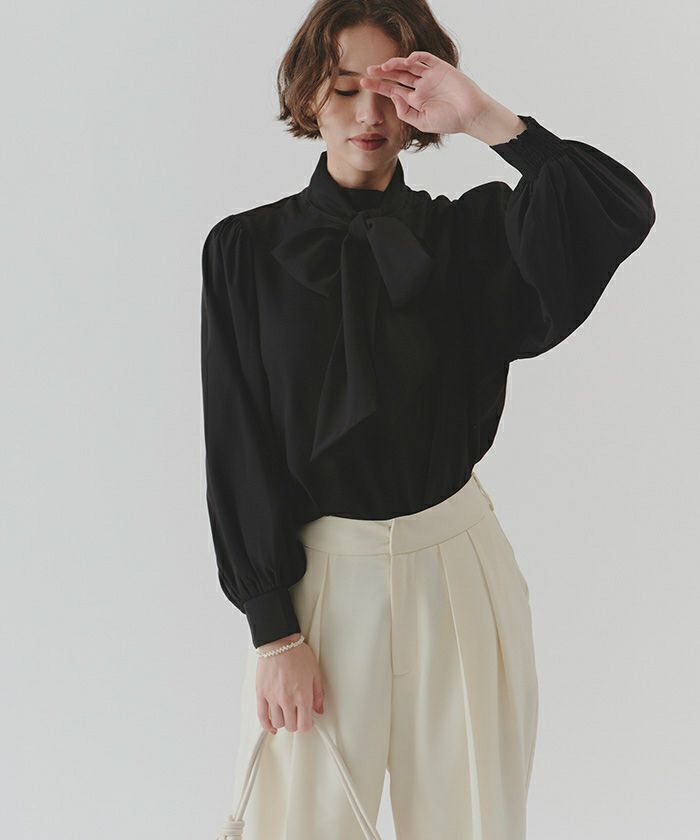 ・ボウタイリボン付きの華やかなブラウス。リボンは別で付属されているので、リボン無しでも、ありでも着ていただけます。