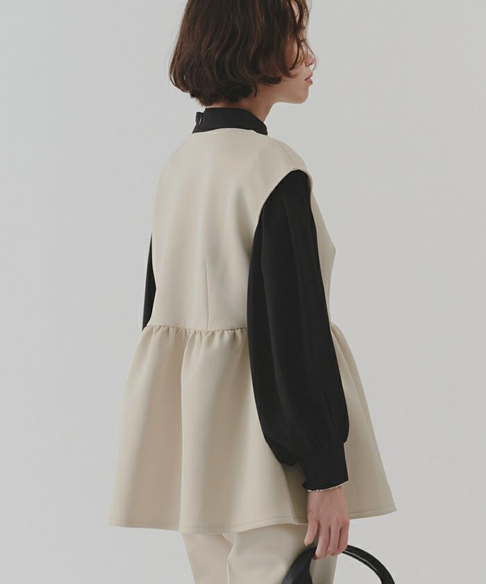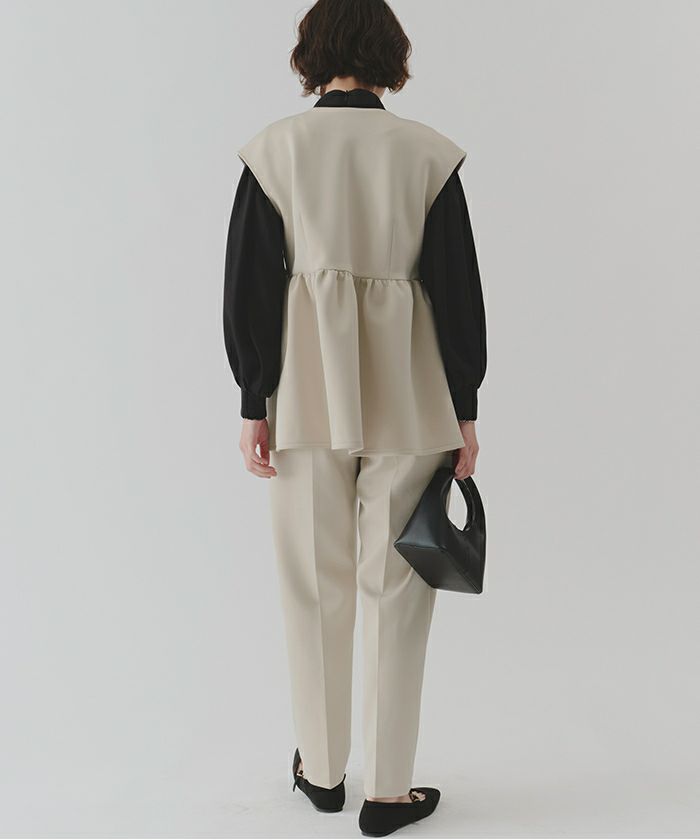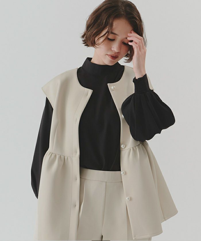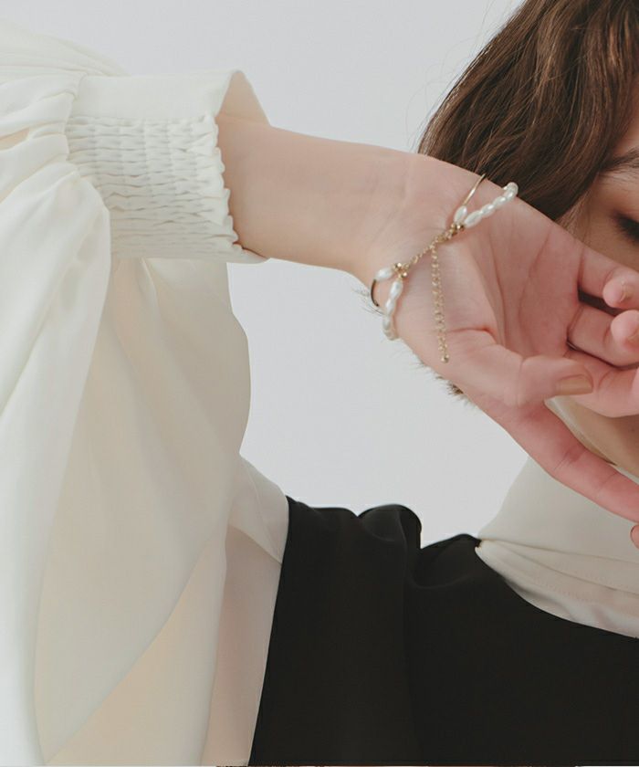 ・袖口は部分的にゴムを中に内蔵しており、ひじの位置でも袖が止まる仕様に。袖にパフっとボリュームをもたせて着るとより女性らしさもUP。