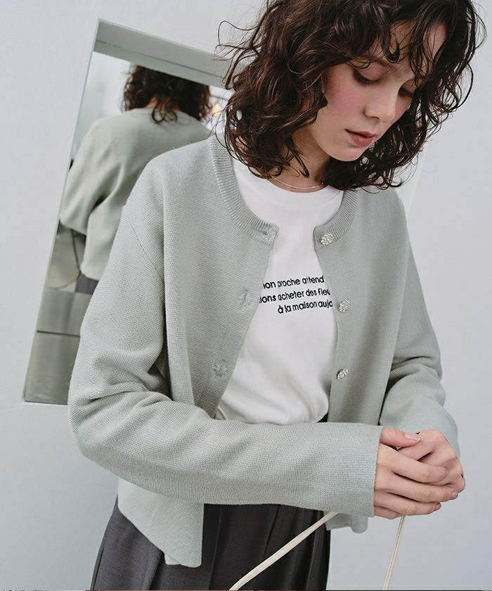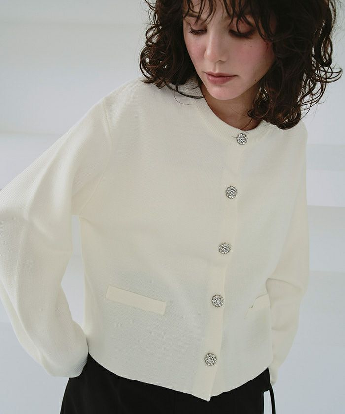 ・着映えするビジュー釦がポイント