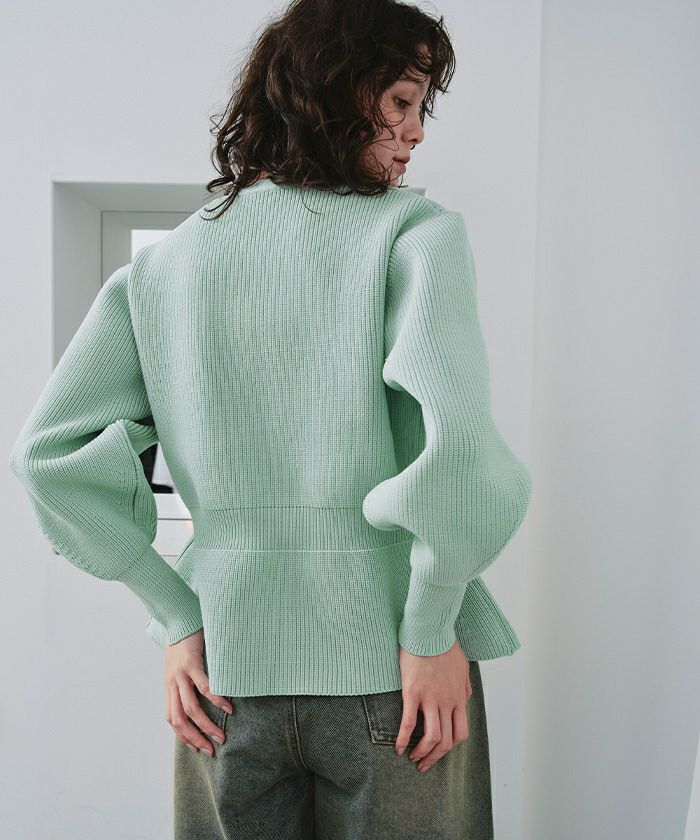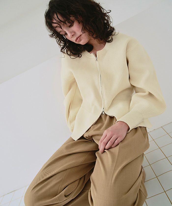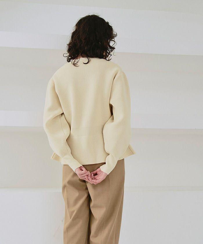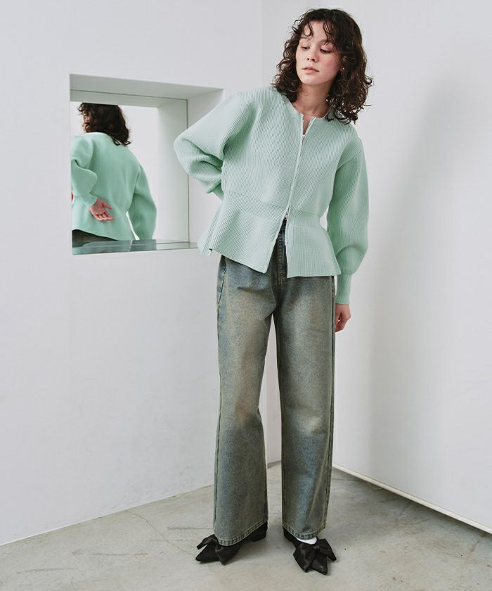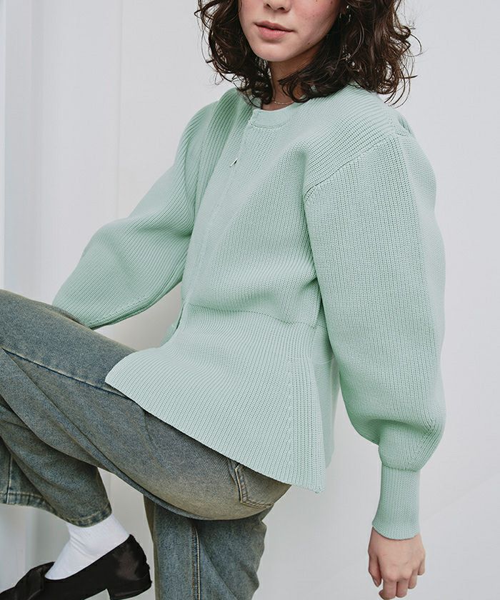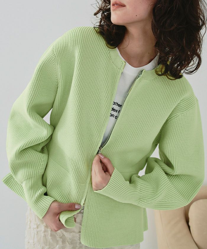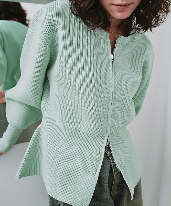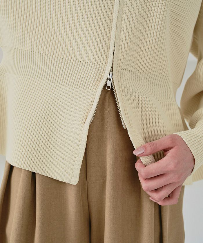 ・ダブルジップ開きのトレンド感あるペプラムニットカーディガン