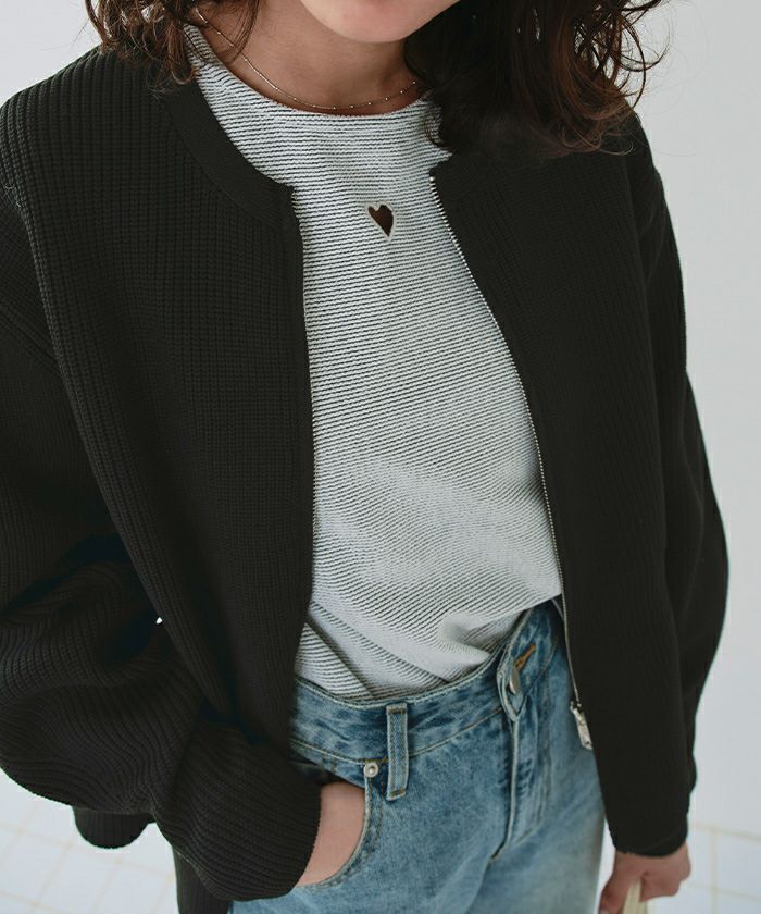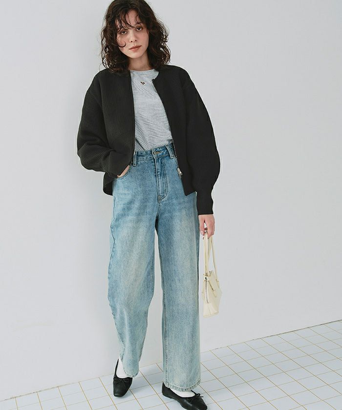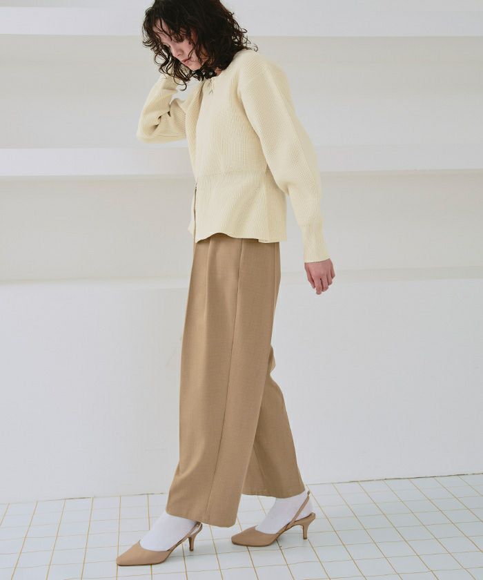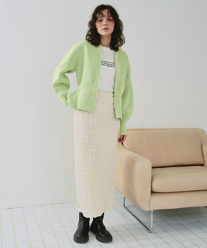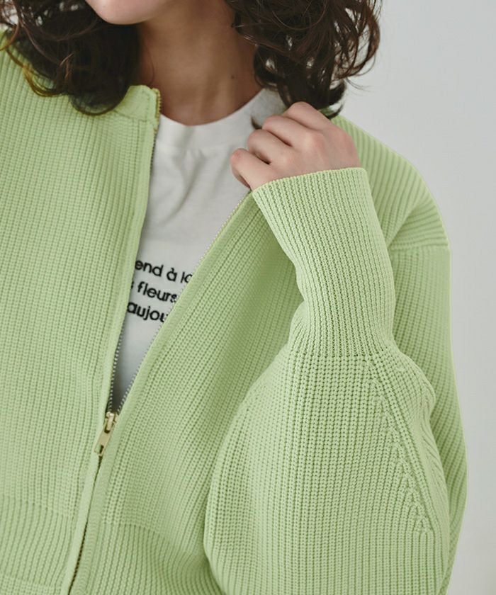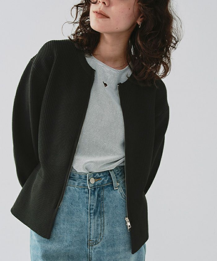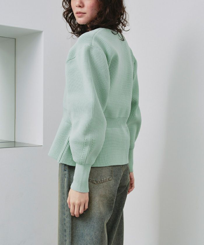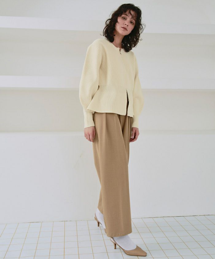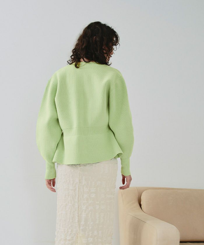 ・ダブルジップ開きのトレンド感あるペプラムニットカーディガン