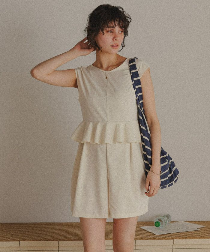 ・服っぽくカジュアルにスタイリングできるロンパースデザインのワンピース水着。