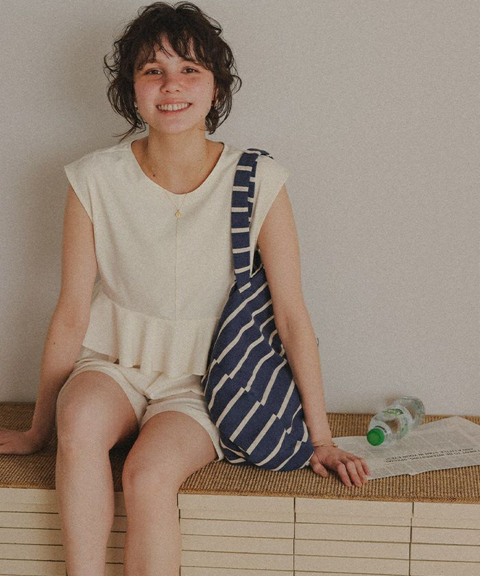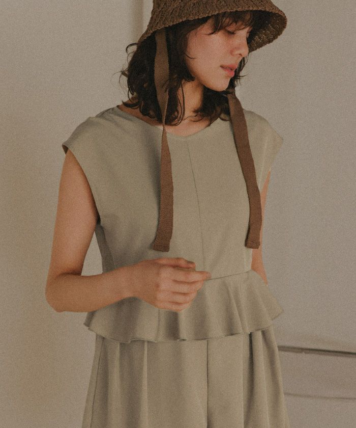 ・ウエストのペプラムフレアで大人可愛く、リゾート映えする1着です。