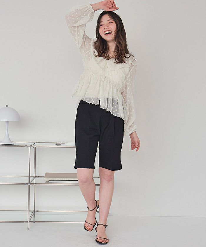 見た目通り可愛いです。周りからもそのトップス可愛いねと褒められます。ウエストの切り替えがありスタイルアップ効果ありです?