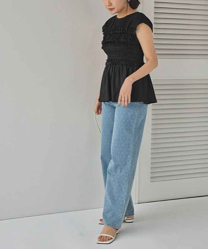 ・フリルの幅も変化をつけ、ウエストでキュッとフィットする、メリハリのあるシルエットに。
