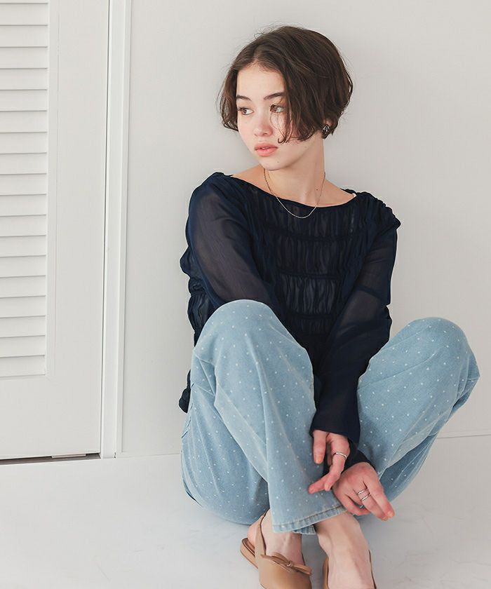 着用 / サイズ:F カラー:ライトブルー、ネイビー、アイボリー、スモークピンク、グレー、ブラック