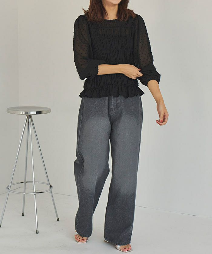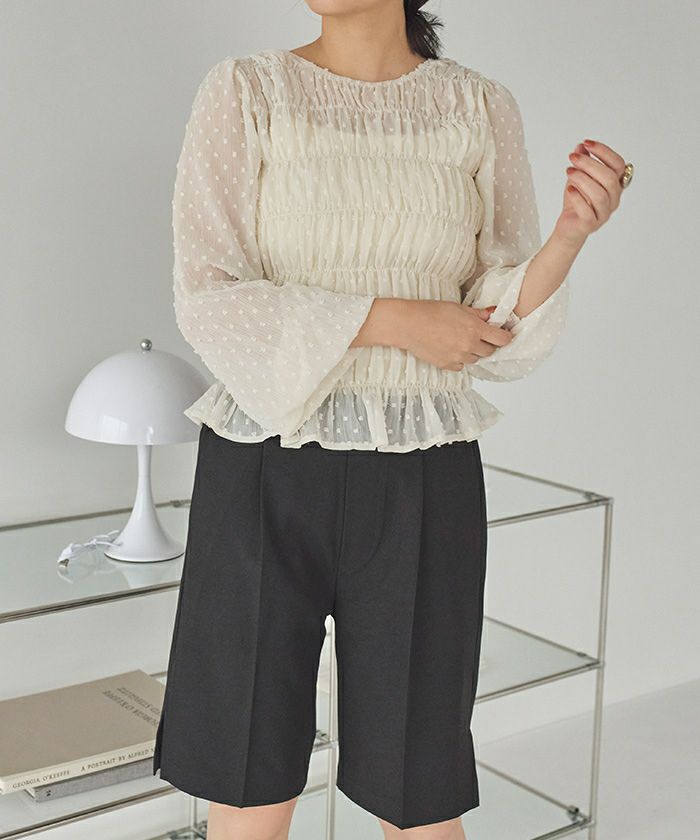 ・シャーリングディティールをボディに施した、軽やかなデザインブラウス