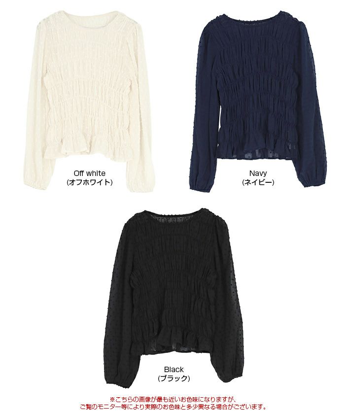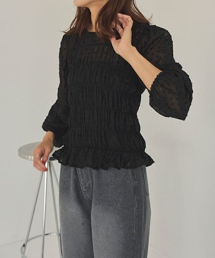 シアー楊柳ぽこぽこシャーリングトップス【メール便可/100】