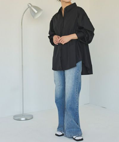 背中のシャーリングがとてもオシャレでなので、ただの白シャツにならずにかっこ良く着れます。 ジーパンやスラックスなどと合わせてラフに着るのがおすすめです。 ボタンは開けても閉めてもどっちも素敵です。