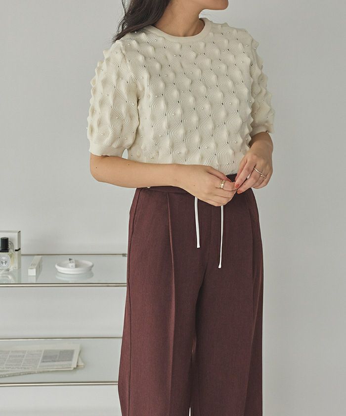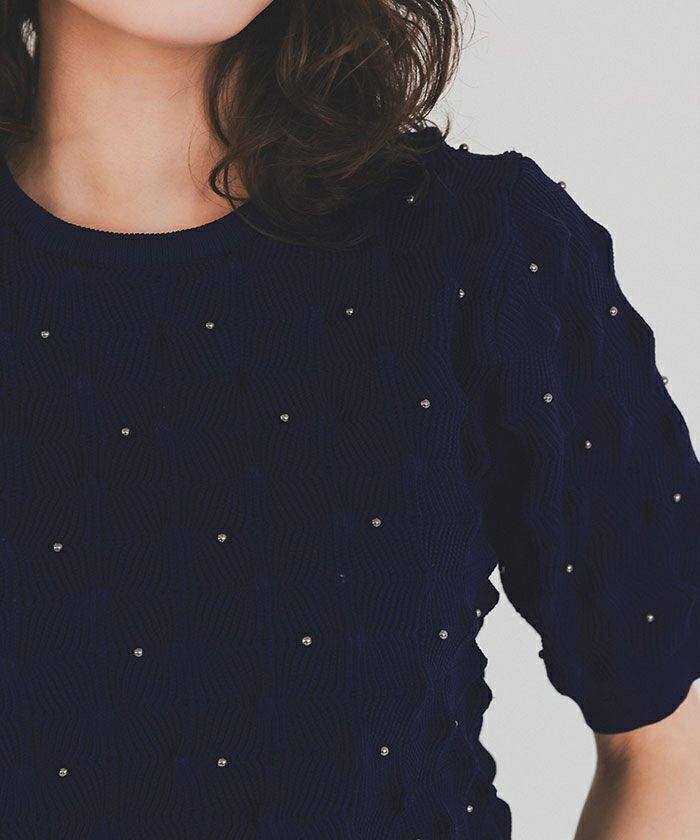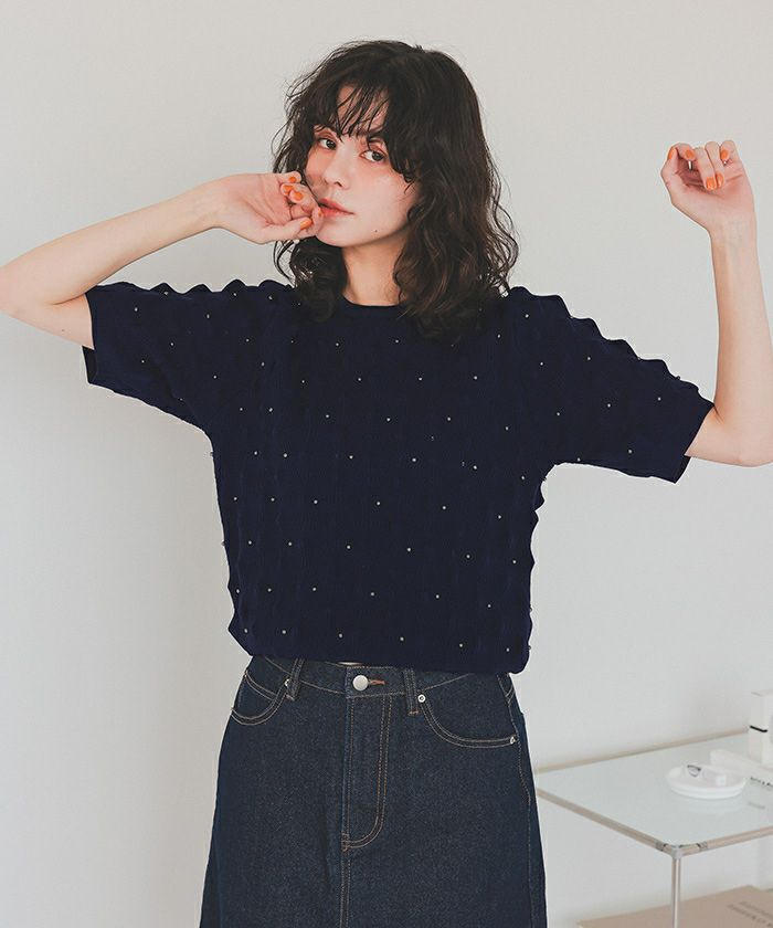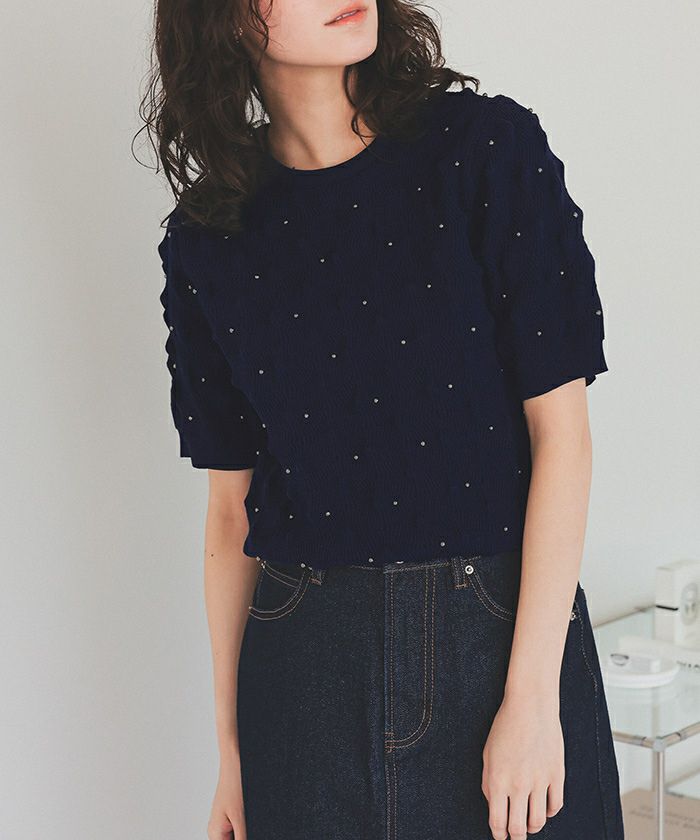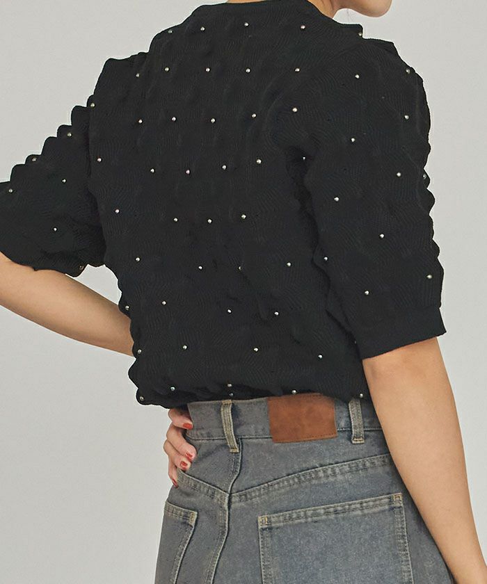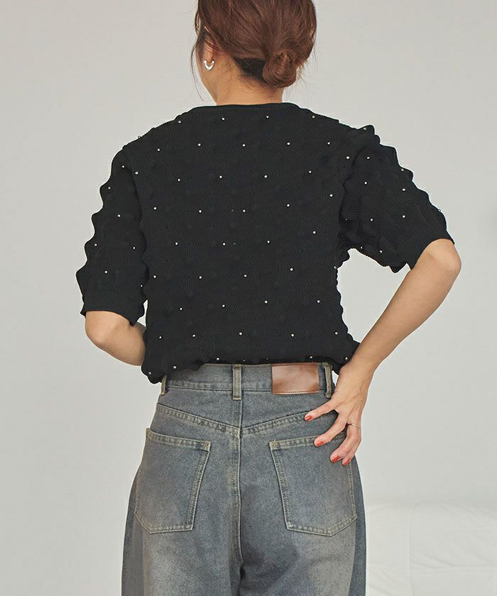 ・ドット見えする打ち込みボールとぽこぽこと表面変化のある編地がかわいいニットトップス