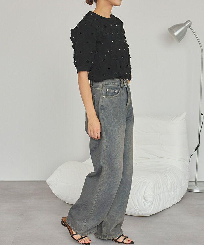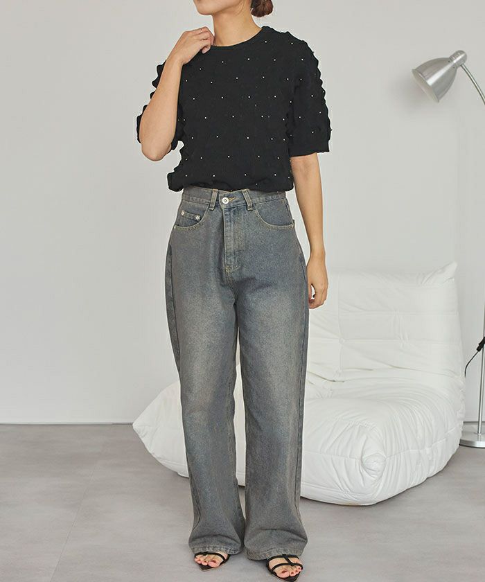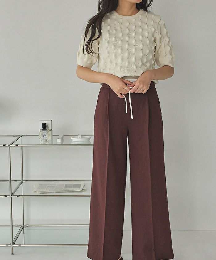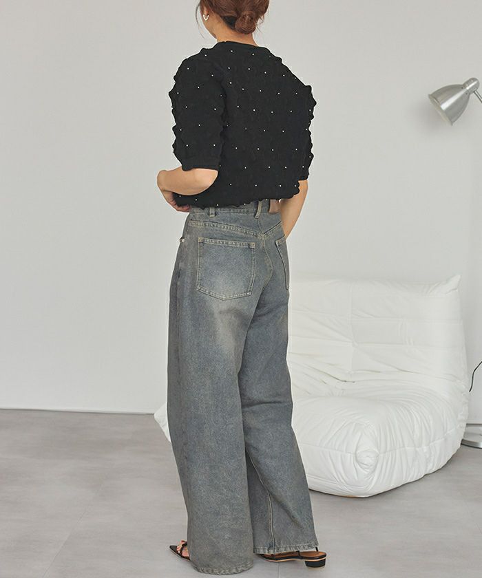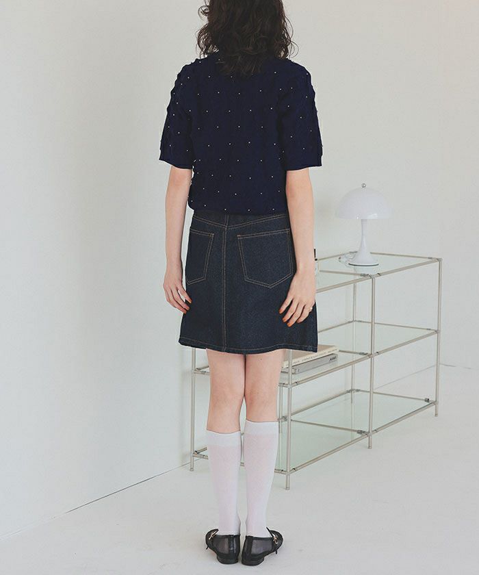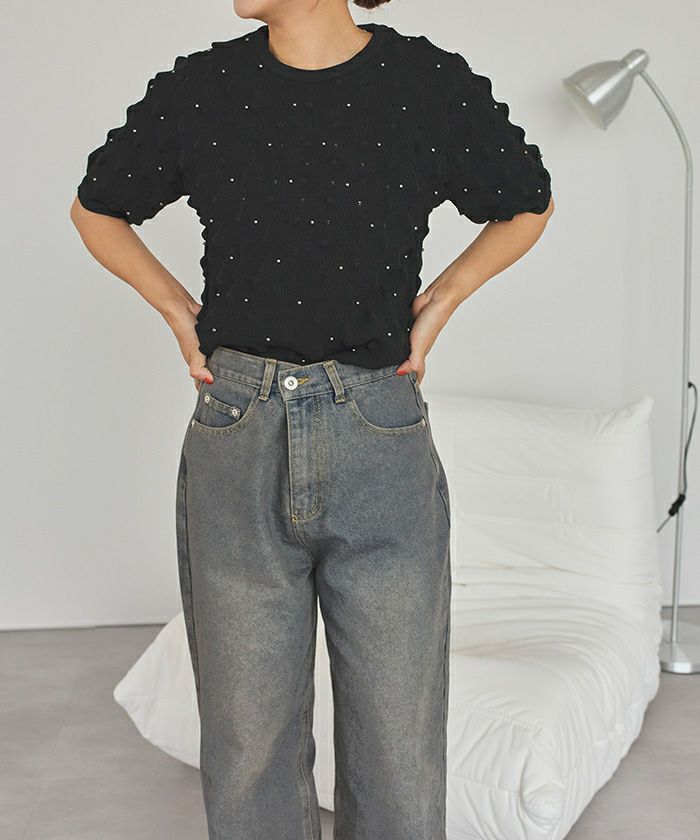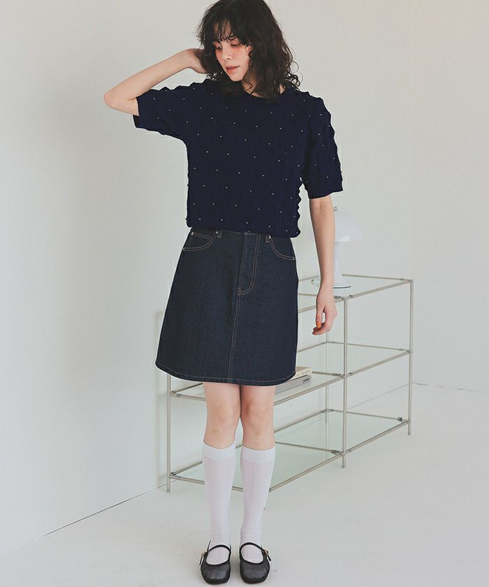 ・ドット見えする打ち込みボールとぽこぽこと表面変化のある編地がかわいいニットトップス