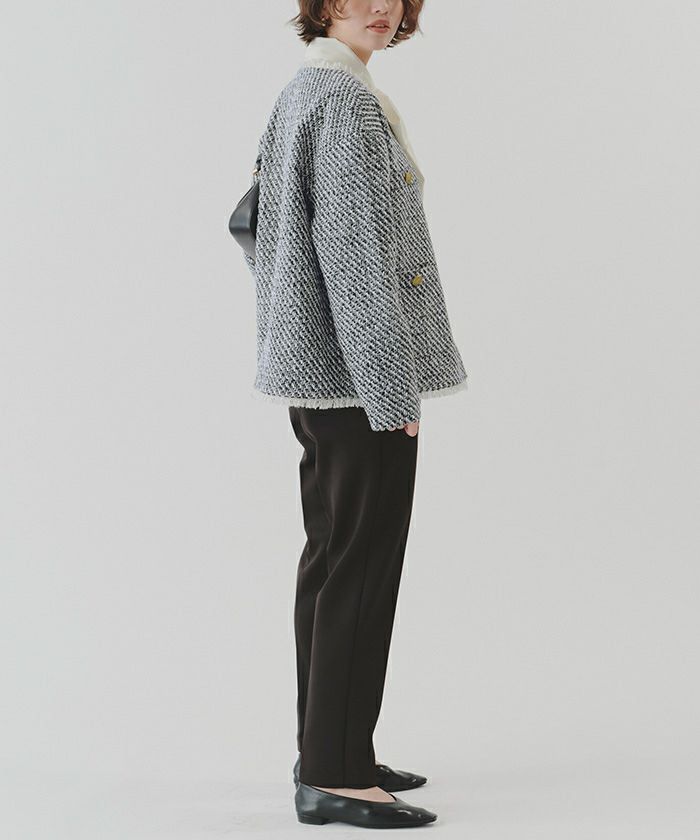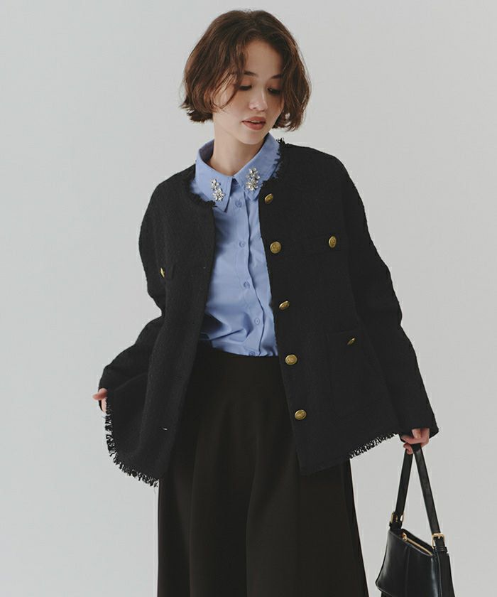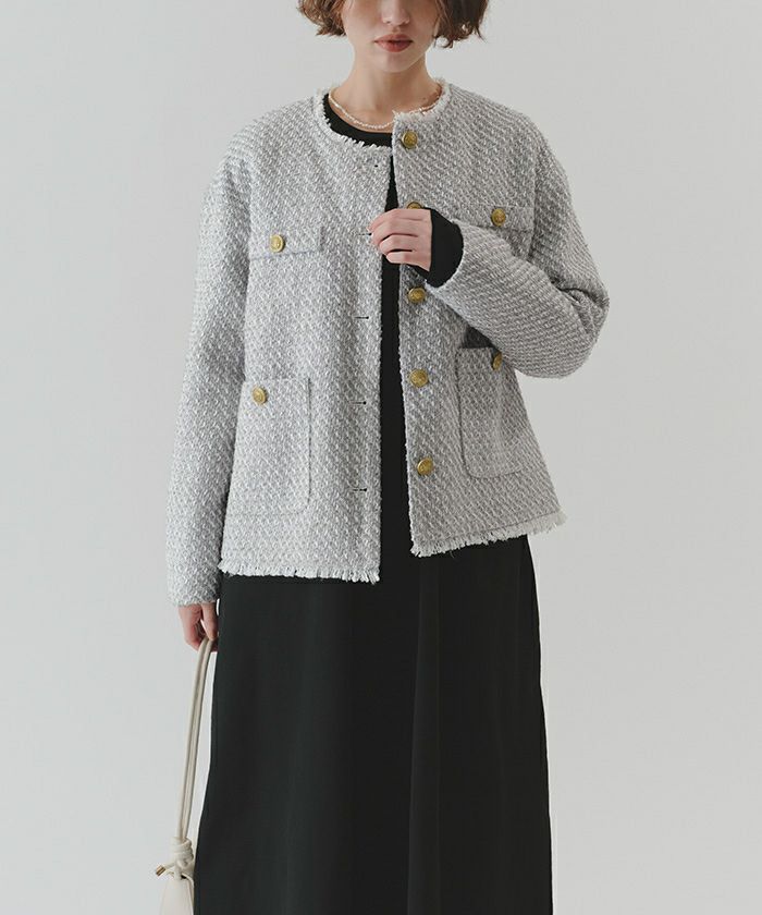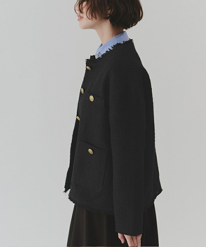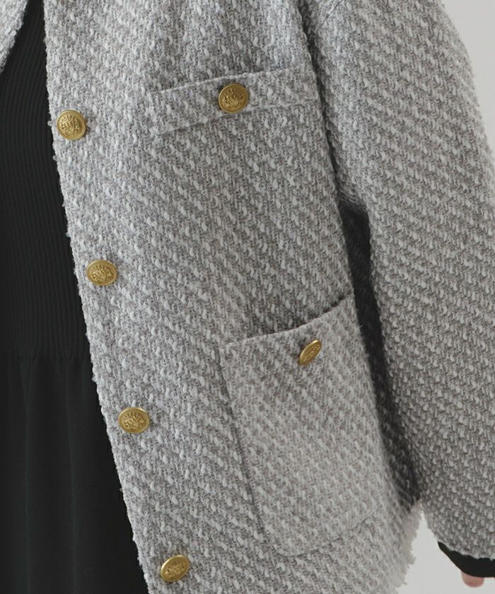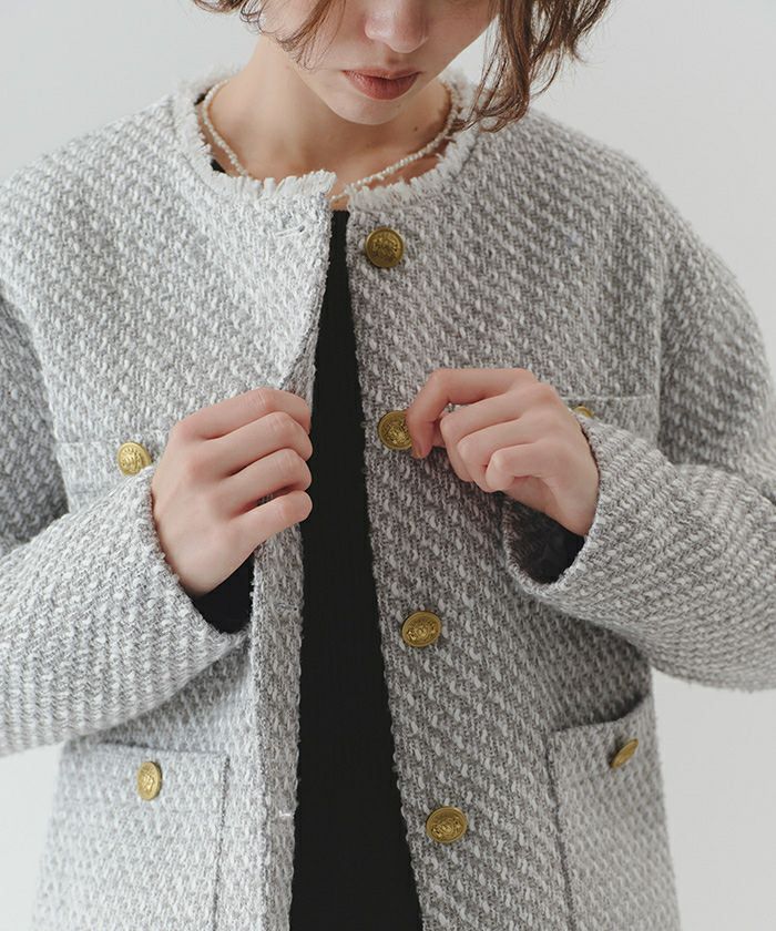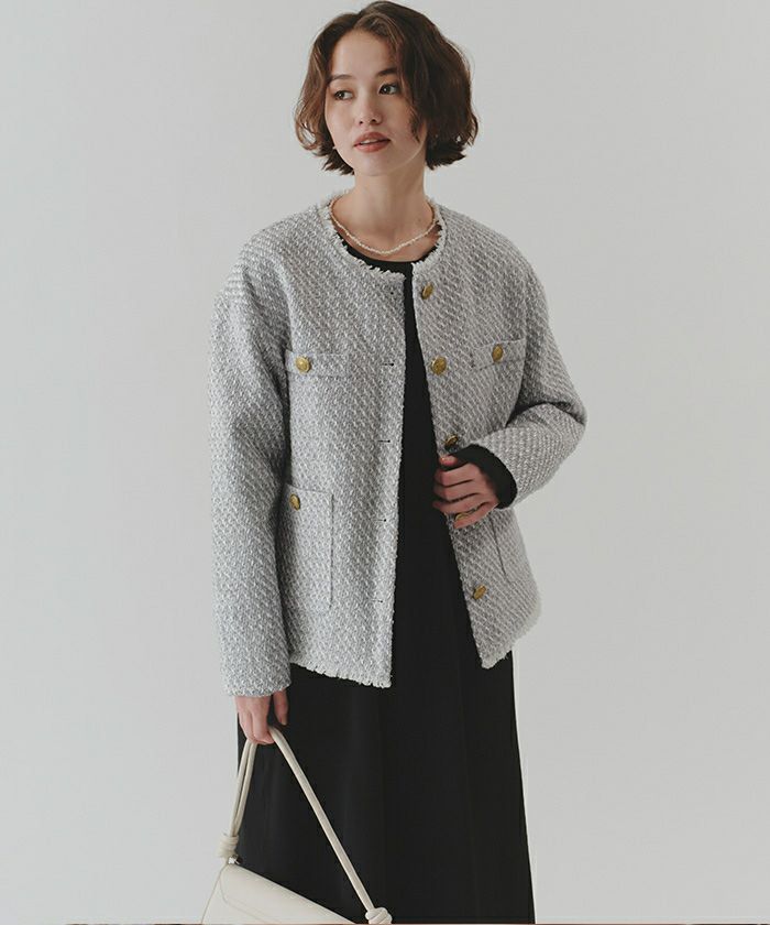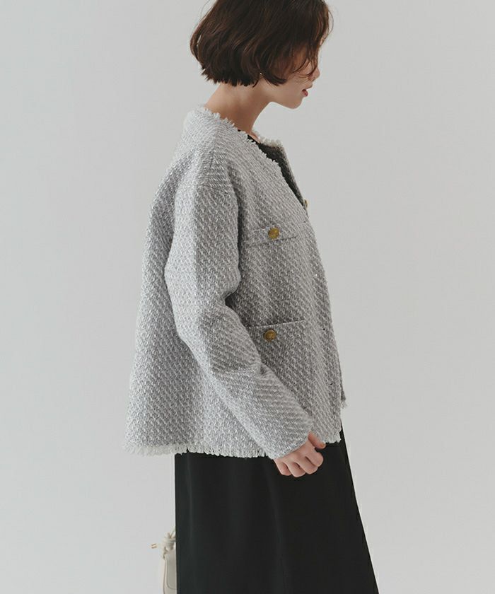 ノーカラーのツィードジャケットなのにオーバーサイズなのがすごく可愛いです*セールで購入できてラッキーです*オススメします*