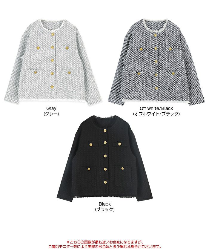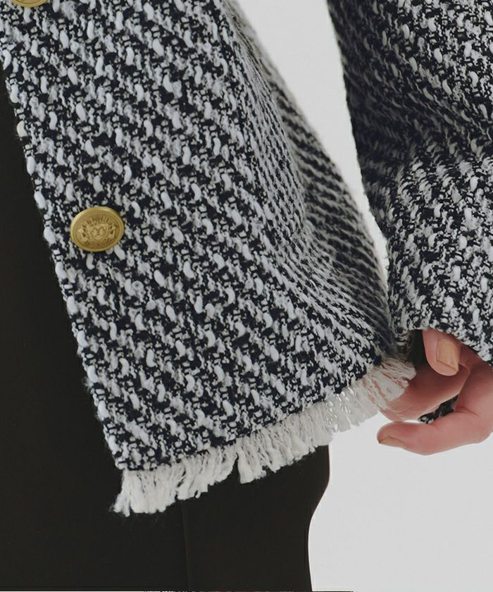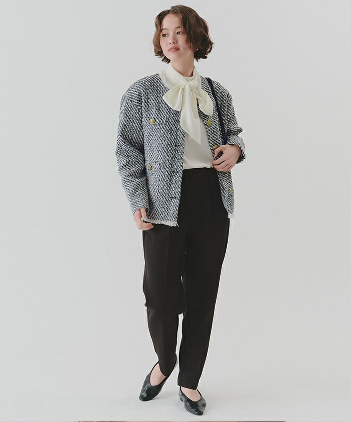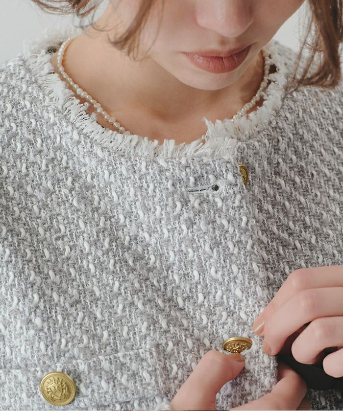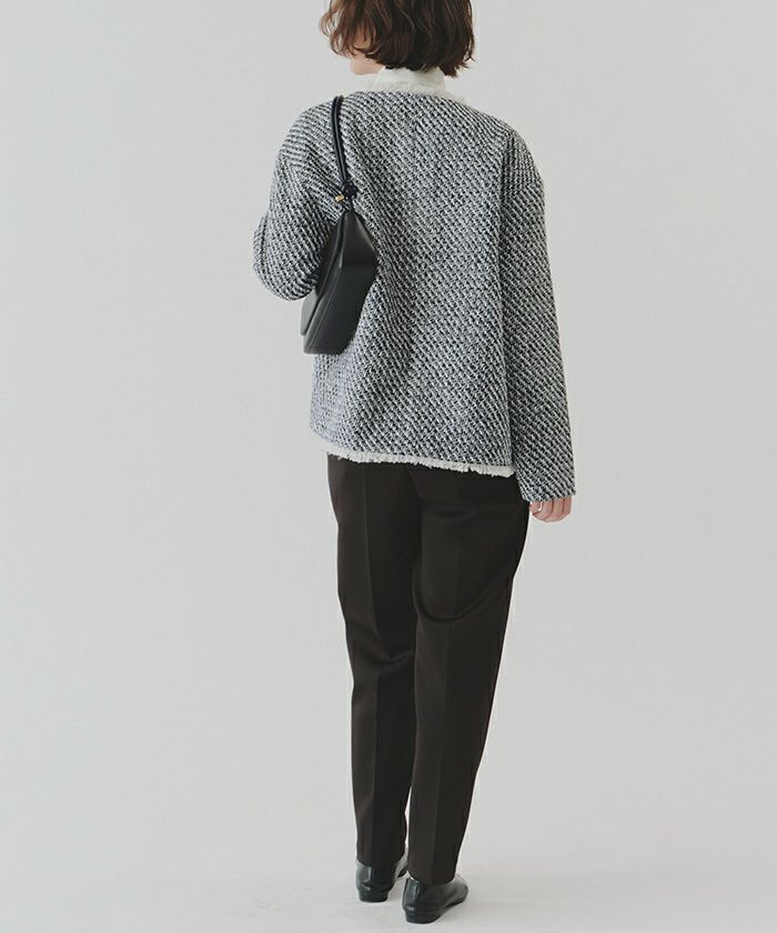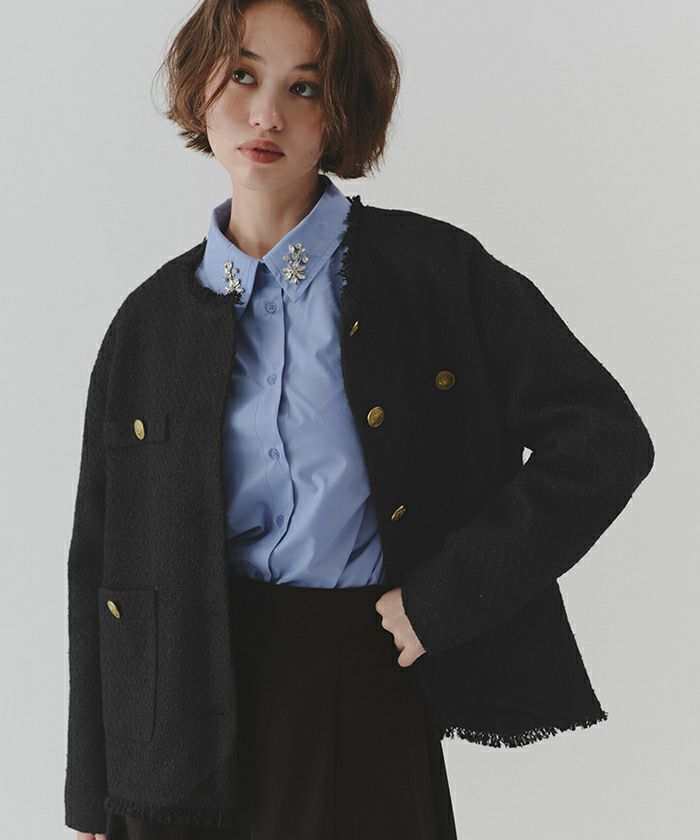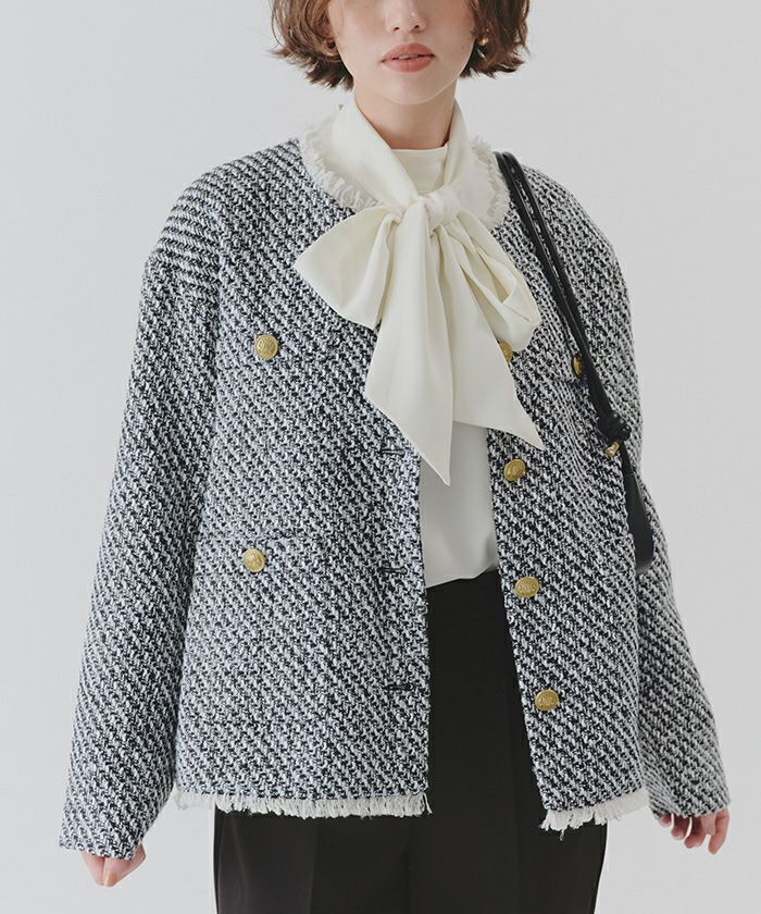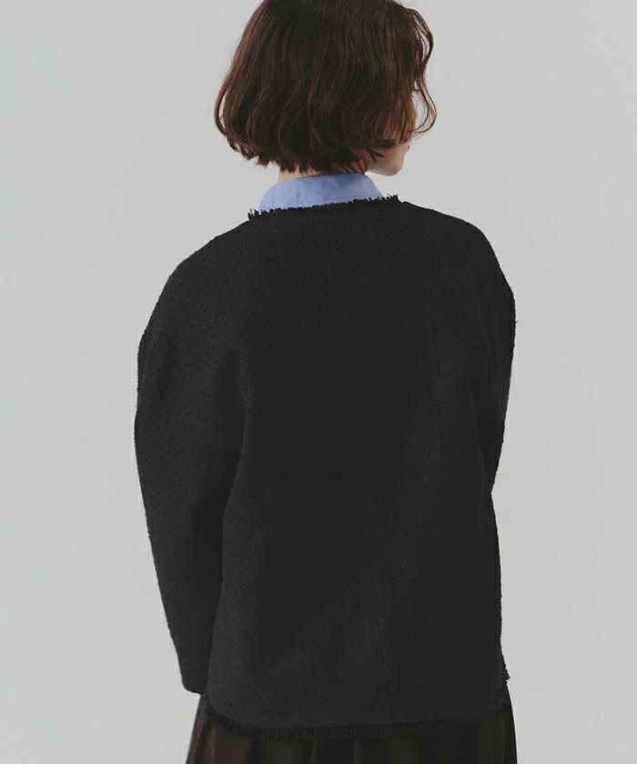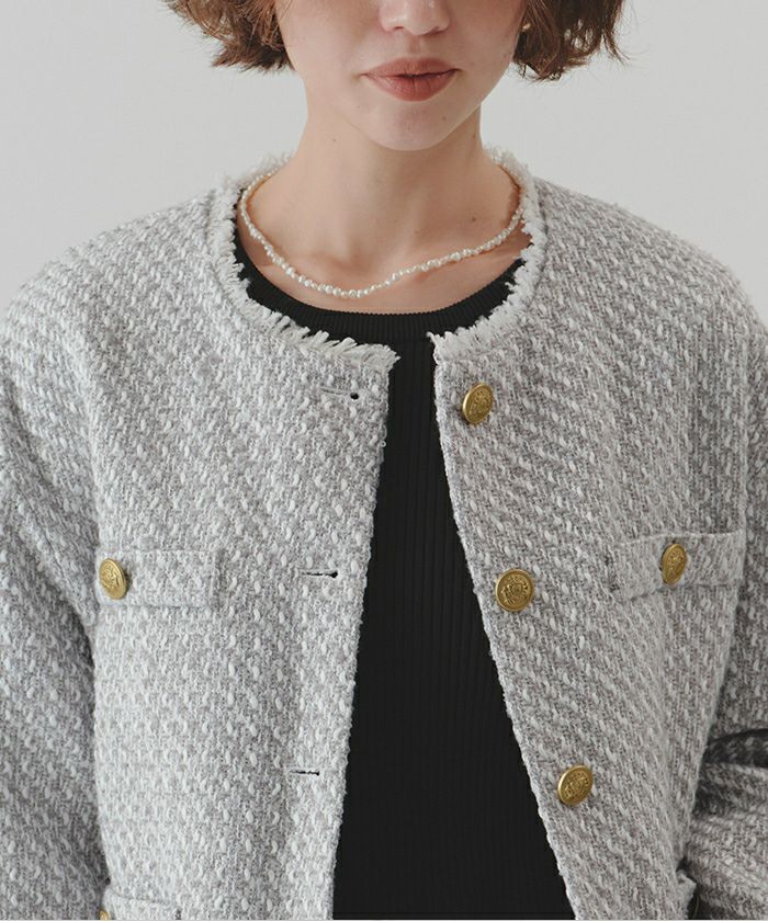 ノーカラーのツィードジャケットなのにオーバーサイズなのがすごく可愛いです*セールで購入できてラッキーです*オススメします*