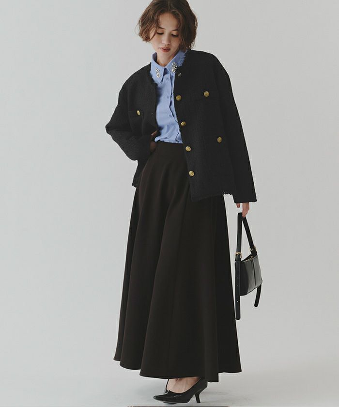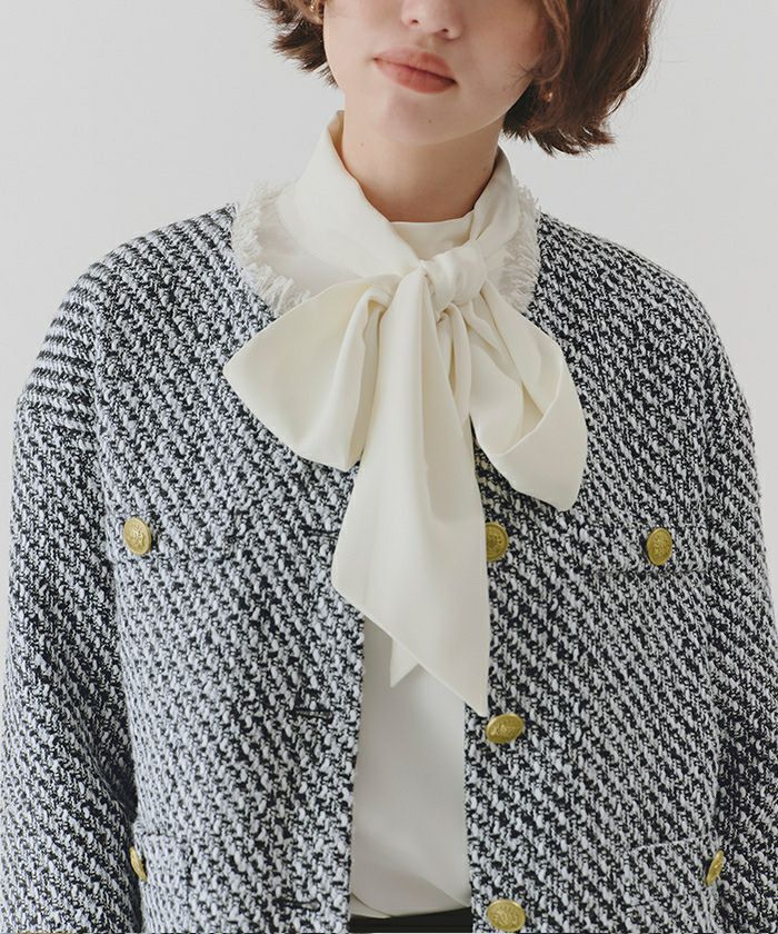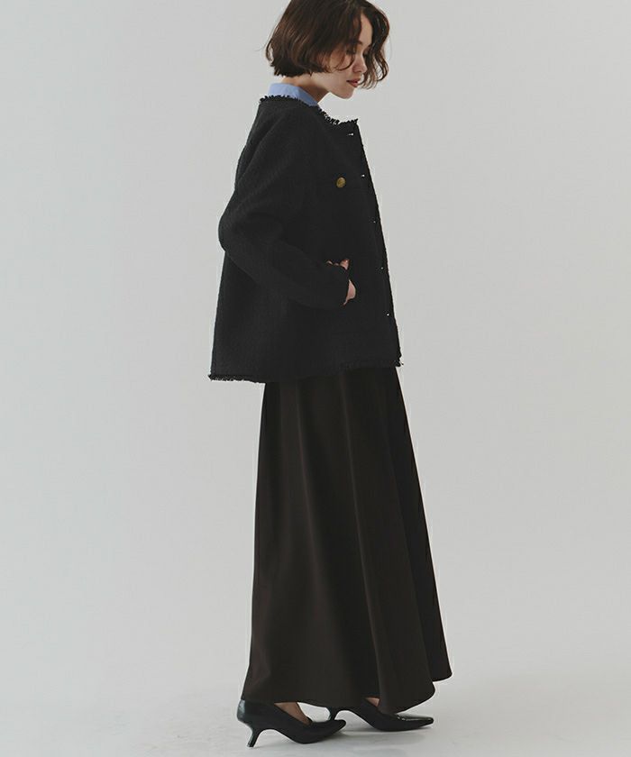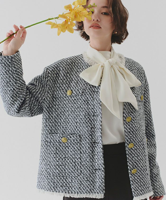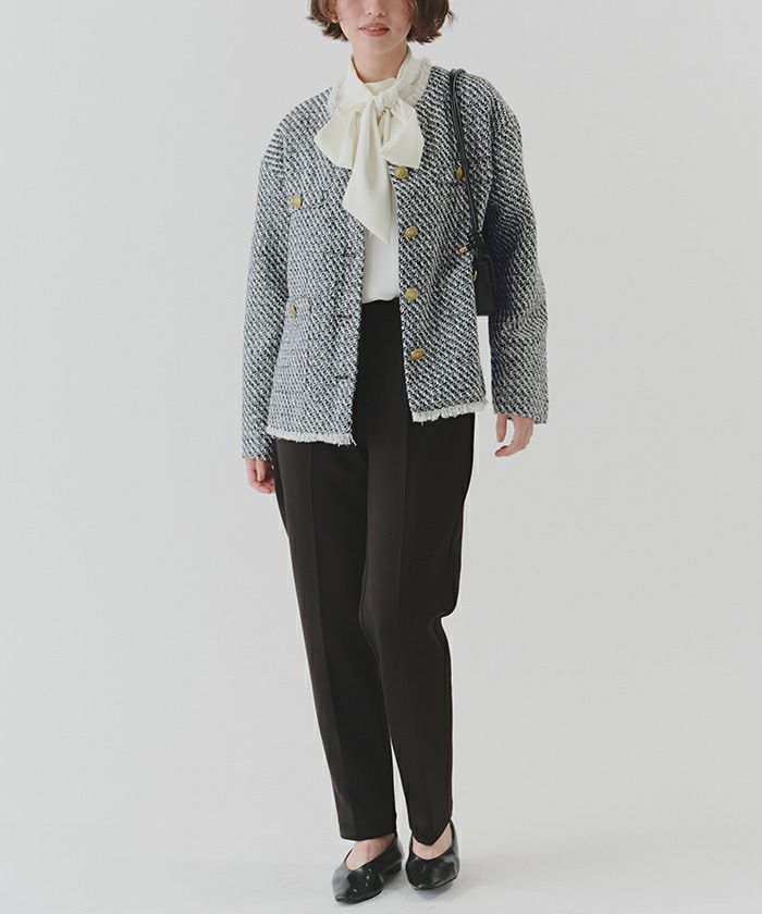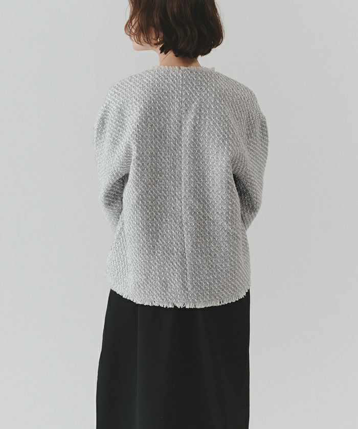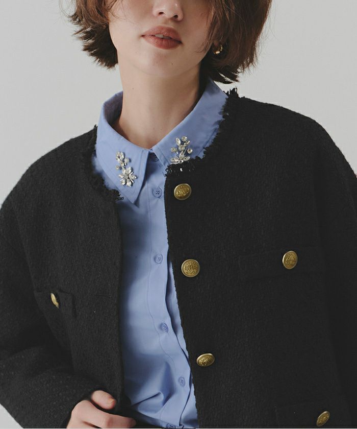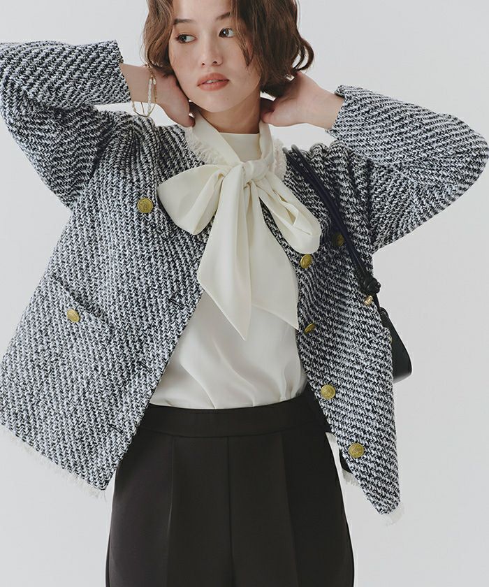 ノーカラーのツィードジャケットなのにオーバーサイズなのがすごく可愛いです*セールで購入できてラッキーです*オススメします*