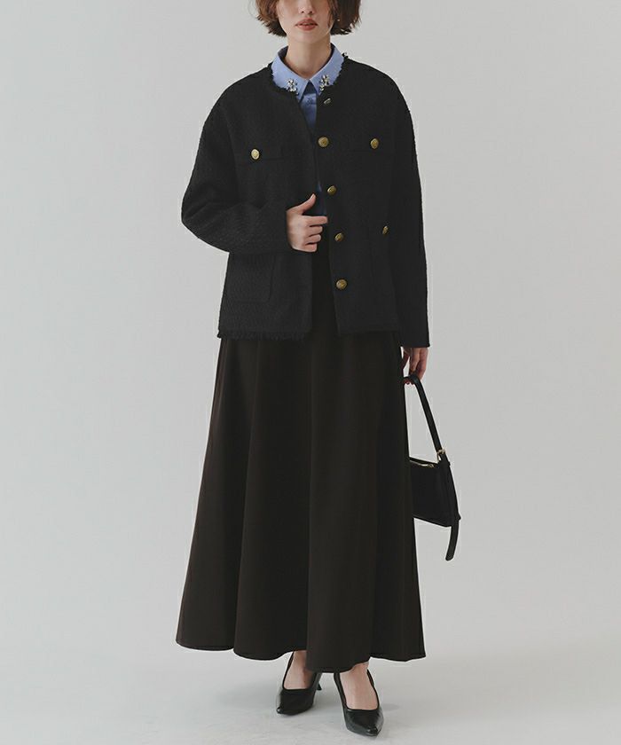 ・ノーカラーなので中に襟付きのトップスも合わせやすい