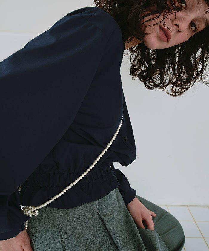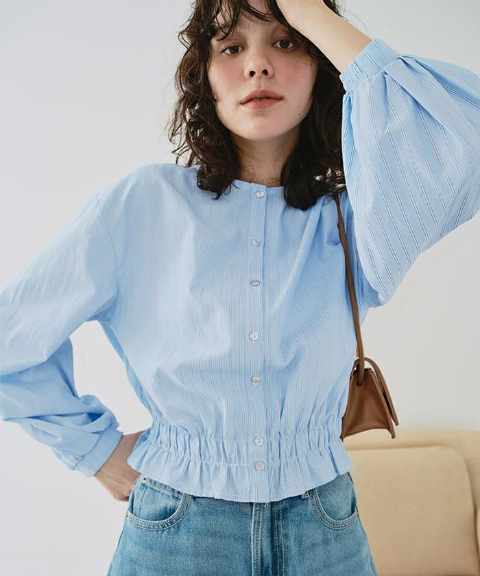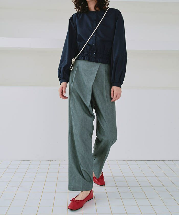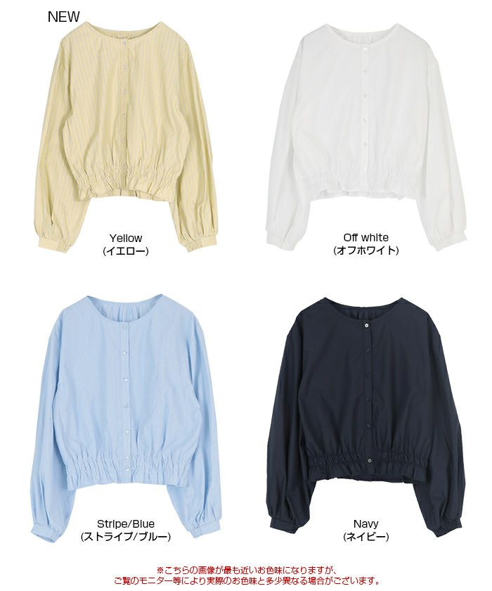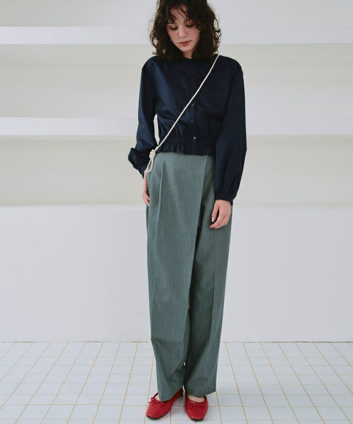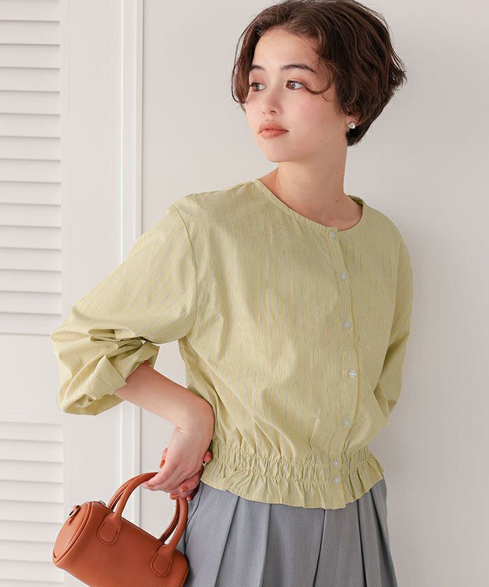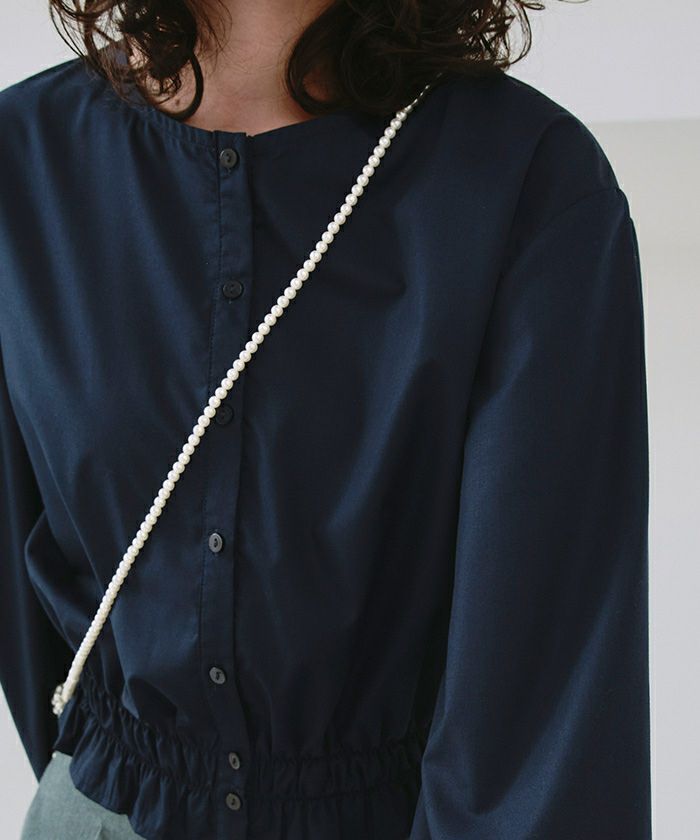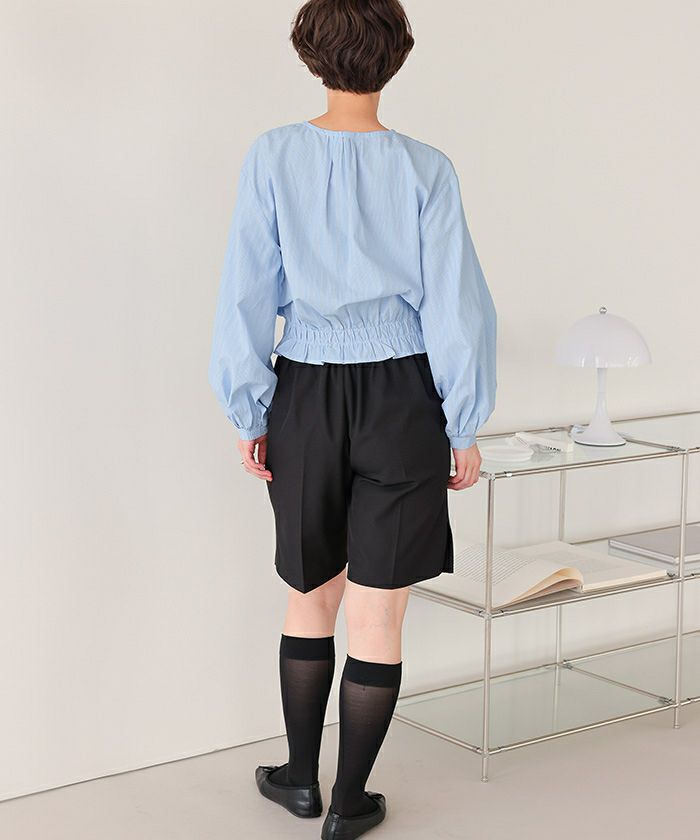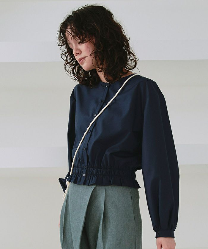 クルーネック裾シャーリングブラウス【メール便可/100】