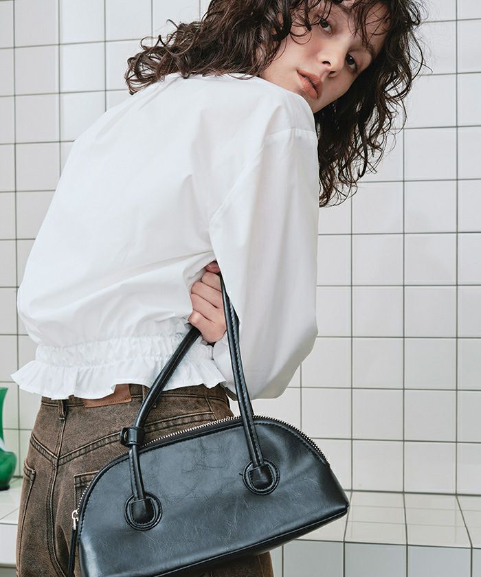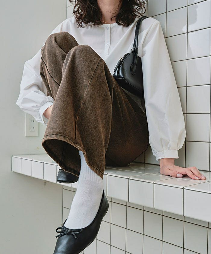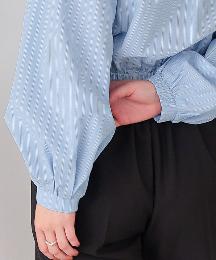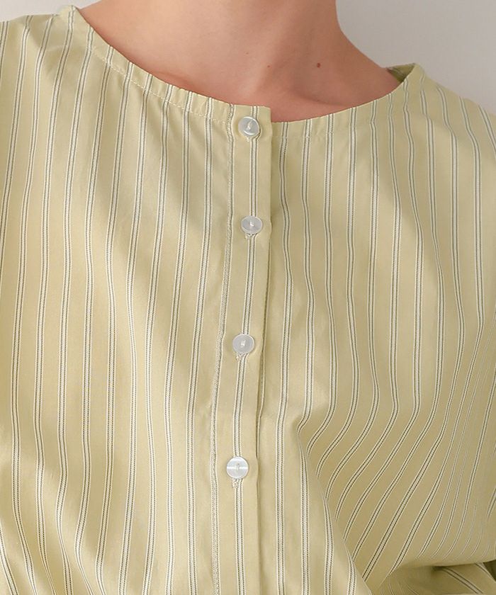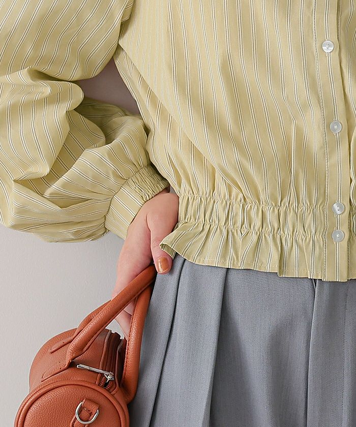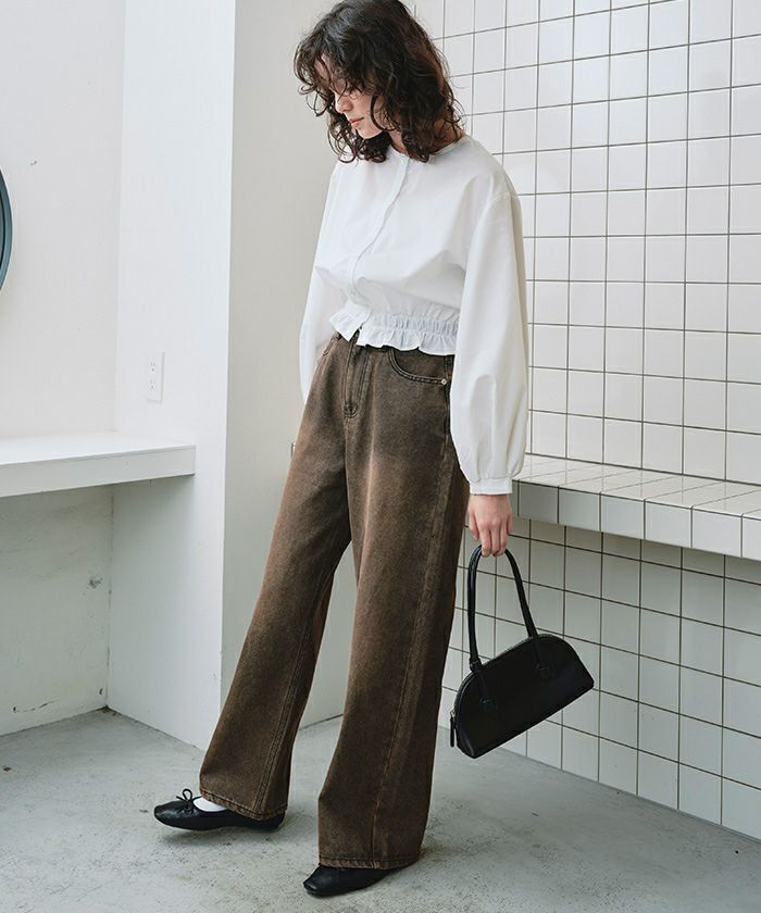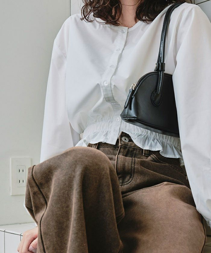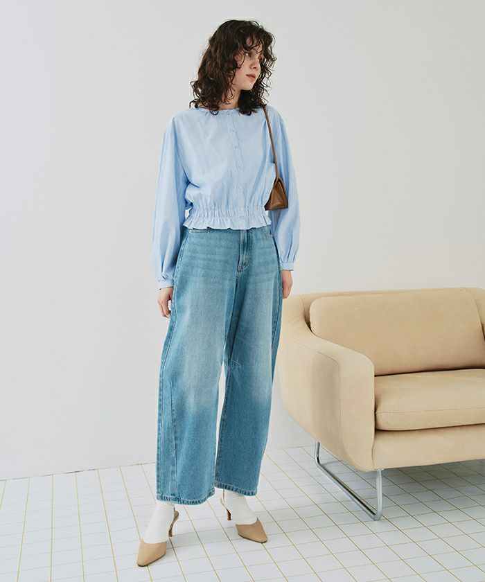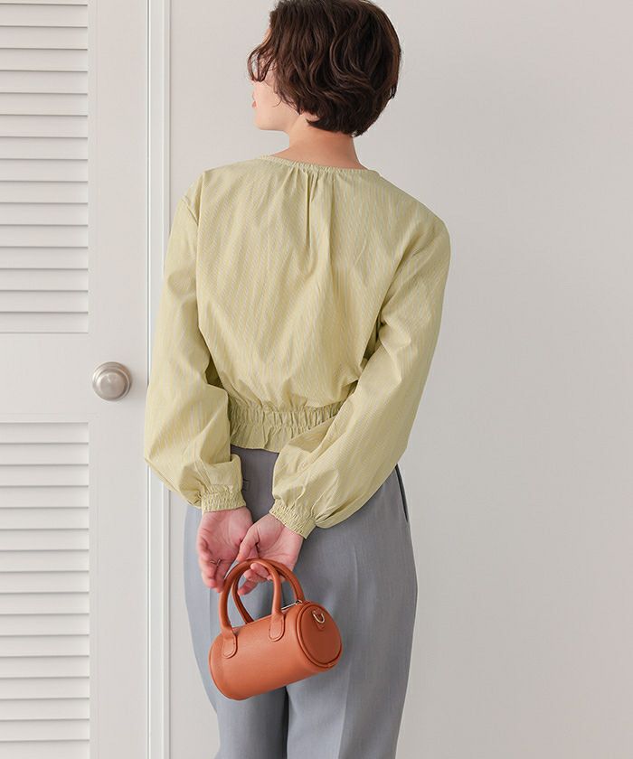 クルーネック裾シャーリングブラウス【メール便可/100】