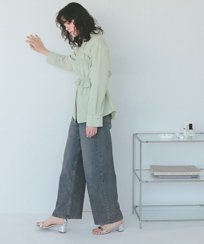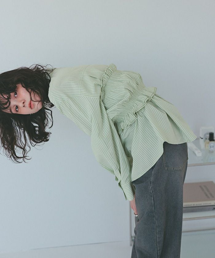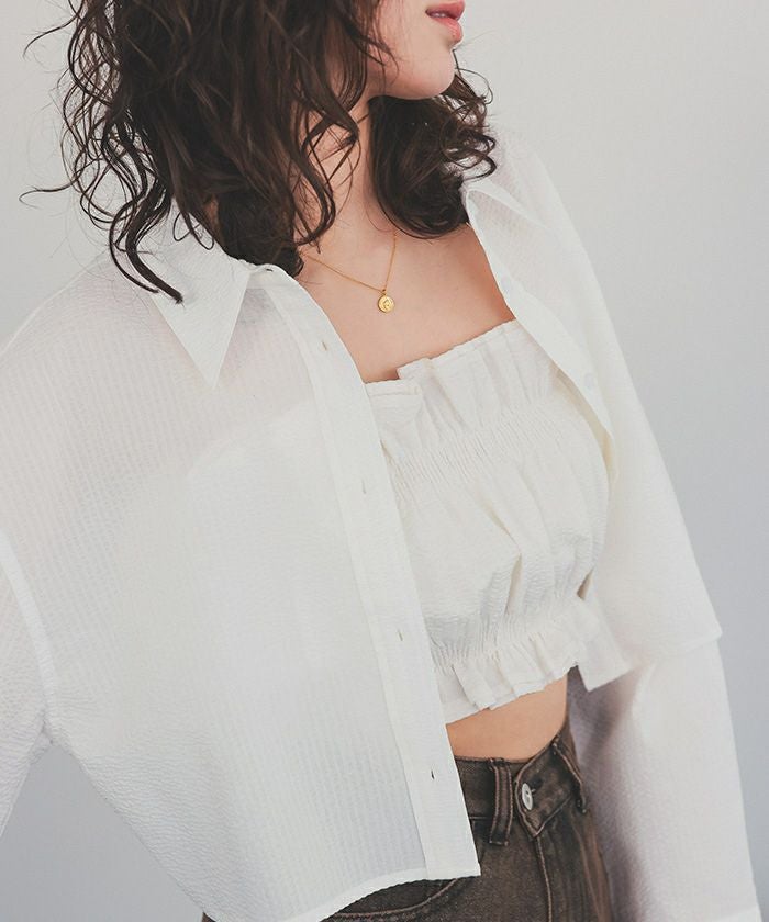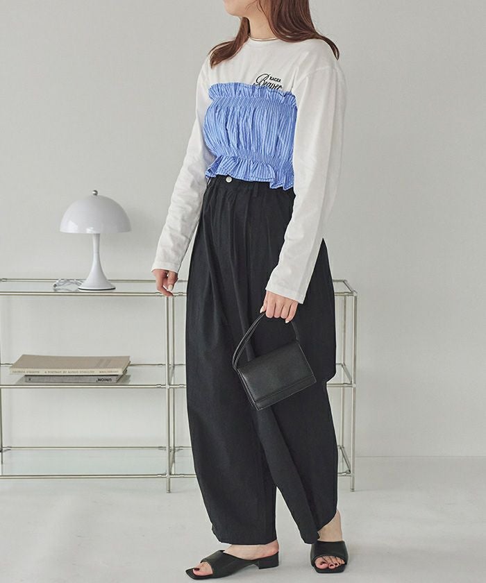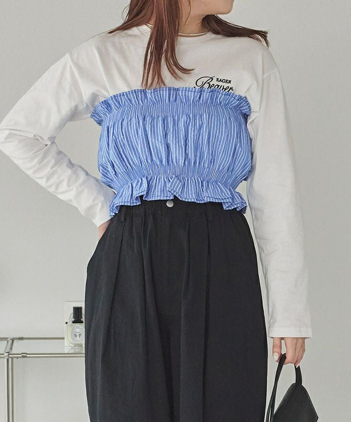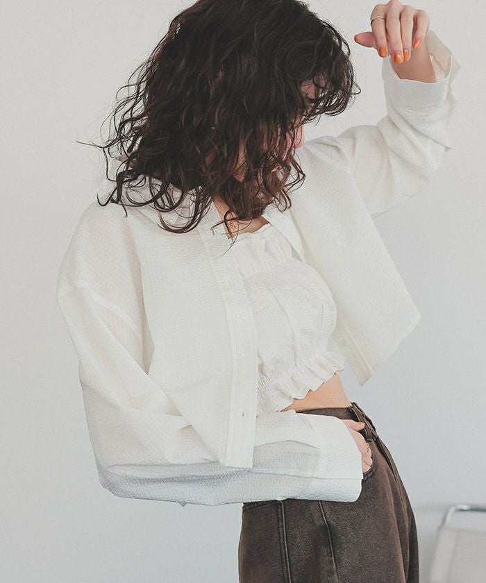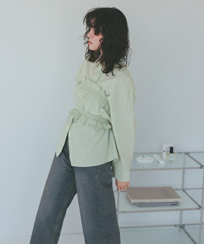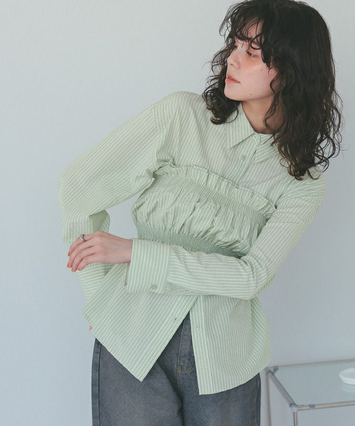 商品情報 ・シャーリングを2段施した、裾のフリルがレディで可愛いビスチェ。