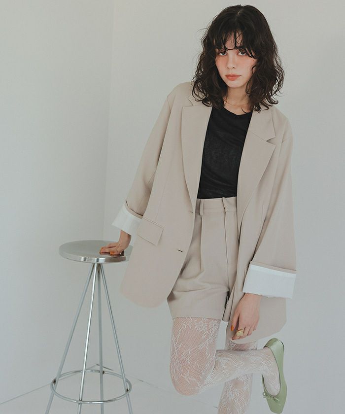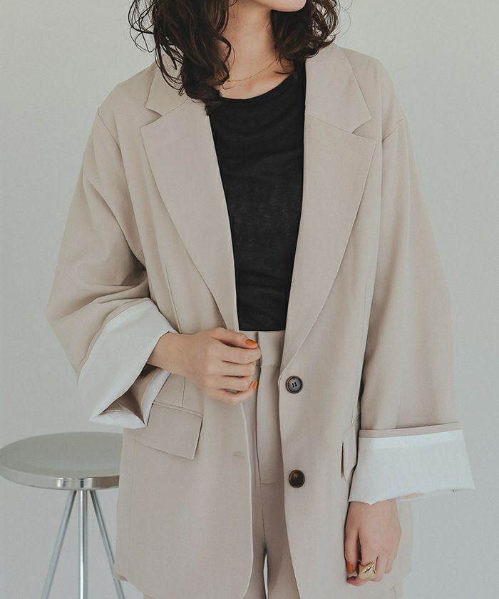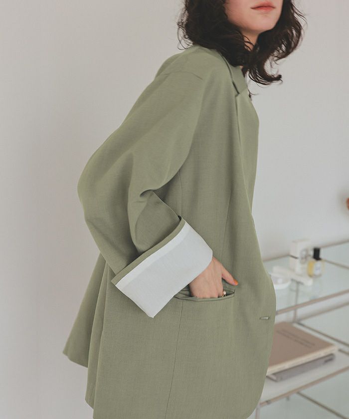 ・袖口はロールアップしてもポイントになる配色スレキデザインと存在感のあるワイドスリーブがポイント