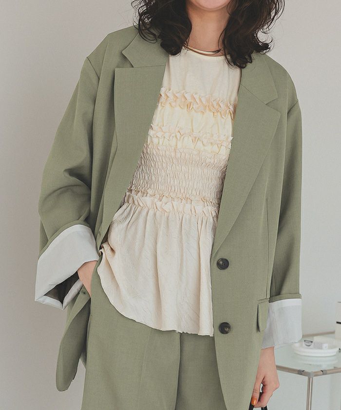 ・たっぷりとオーバーデザインで分量のあるサイズ感が華やかなワイドスリーブジャケット