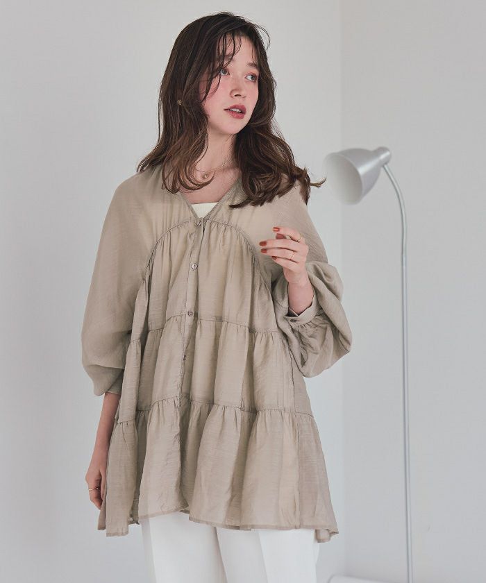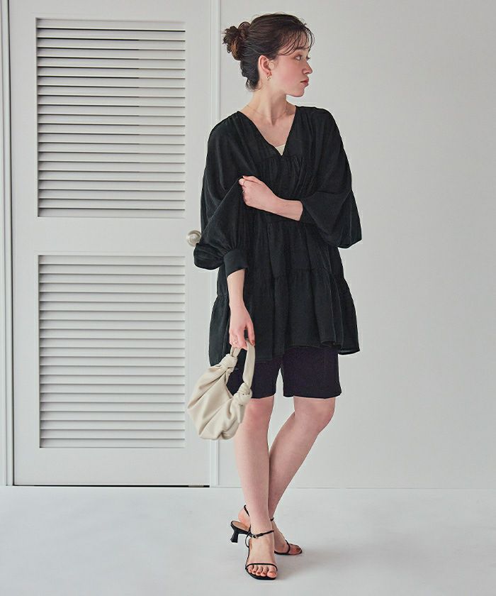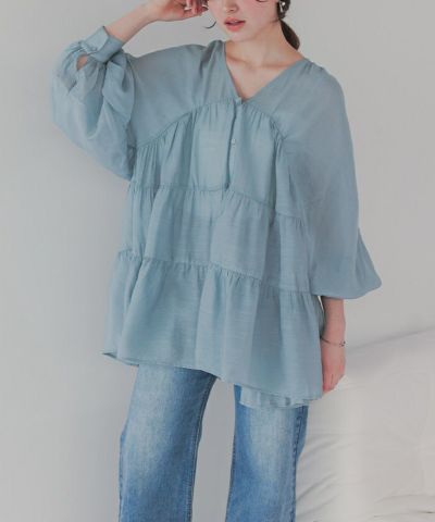 Vネックティアードチュニックブラウス