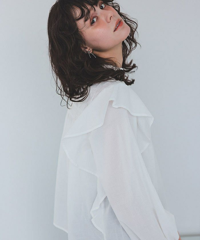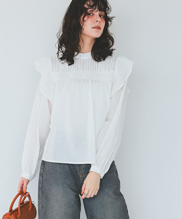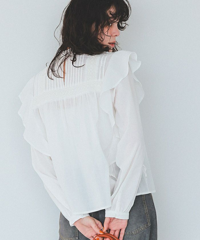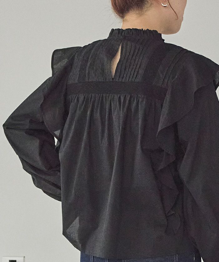ピンタックデザインフリルブラウス