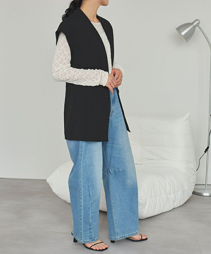 ・レイヤードするインナーによって長く幅広くコーディネートして楽しんで頂けるスリーブレスデザイン