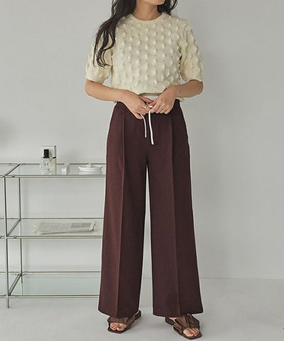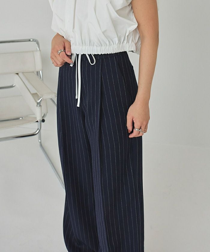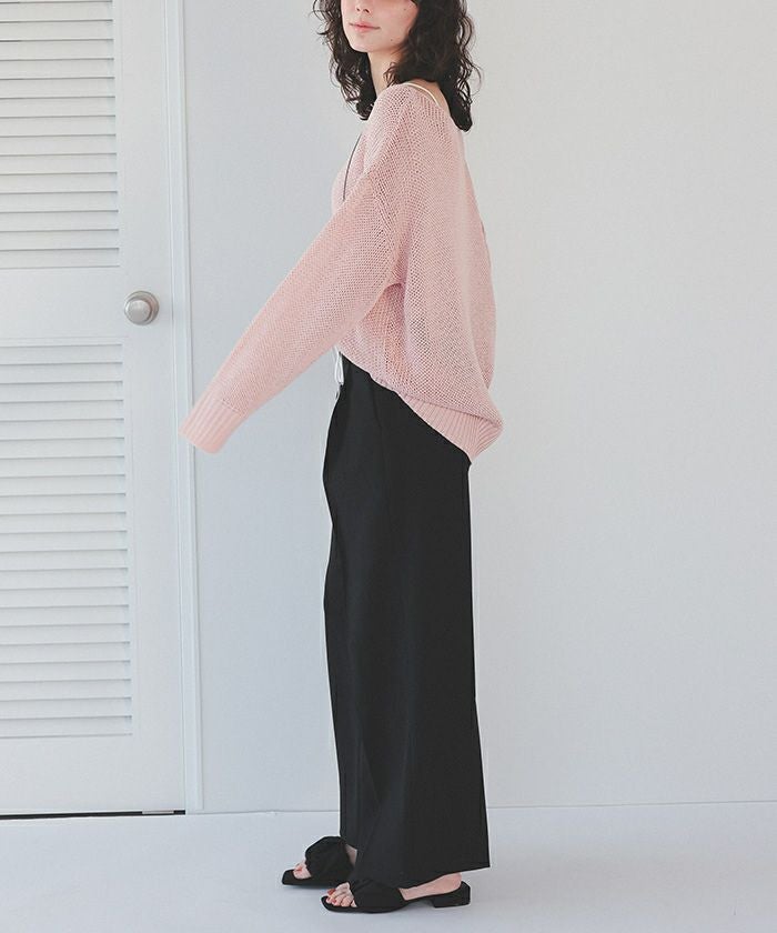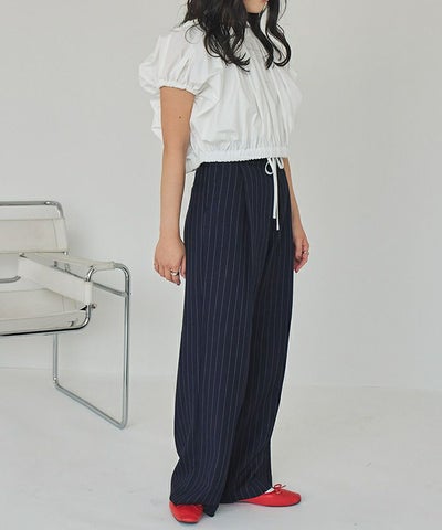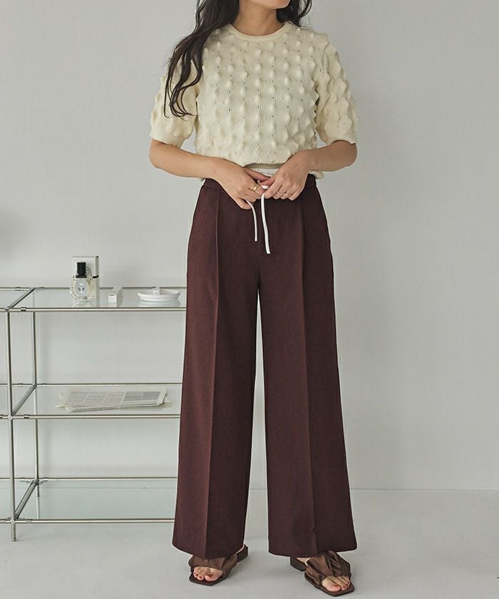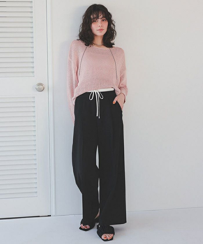 ・ウエストのリボン部分で絞り、ある程度の着用感は調整可能となります
