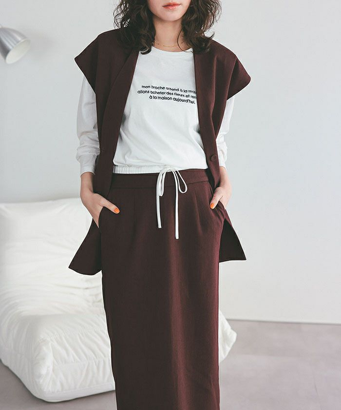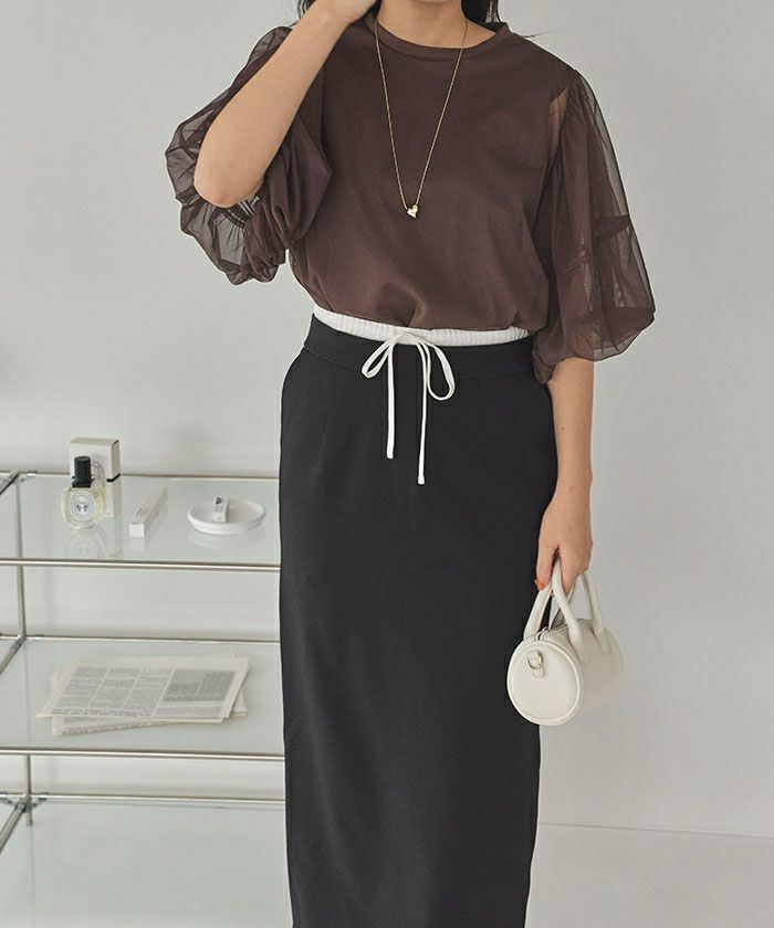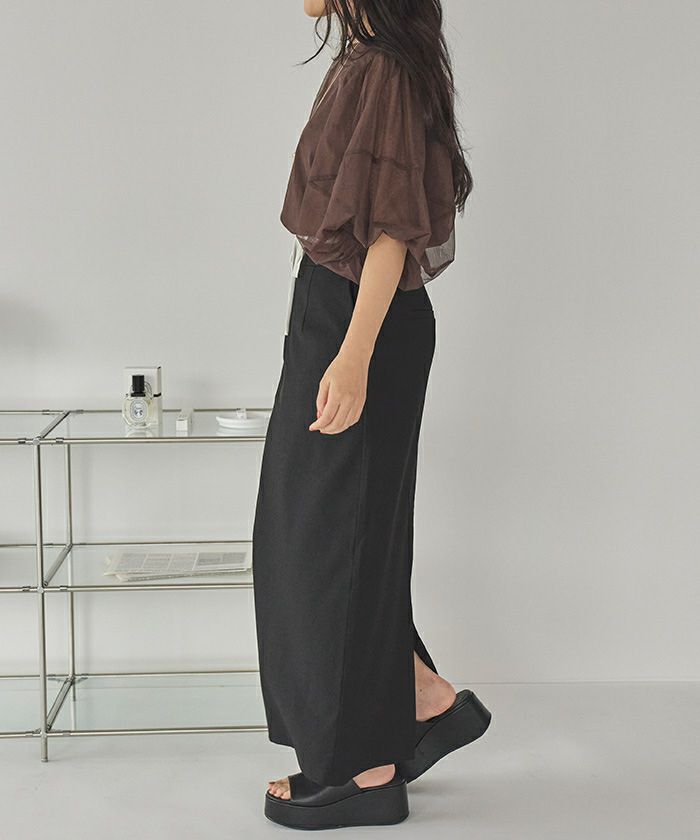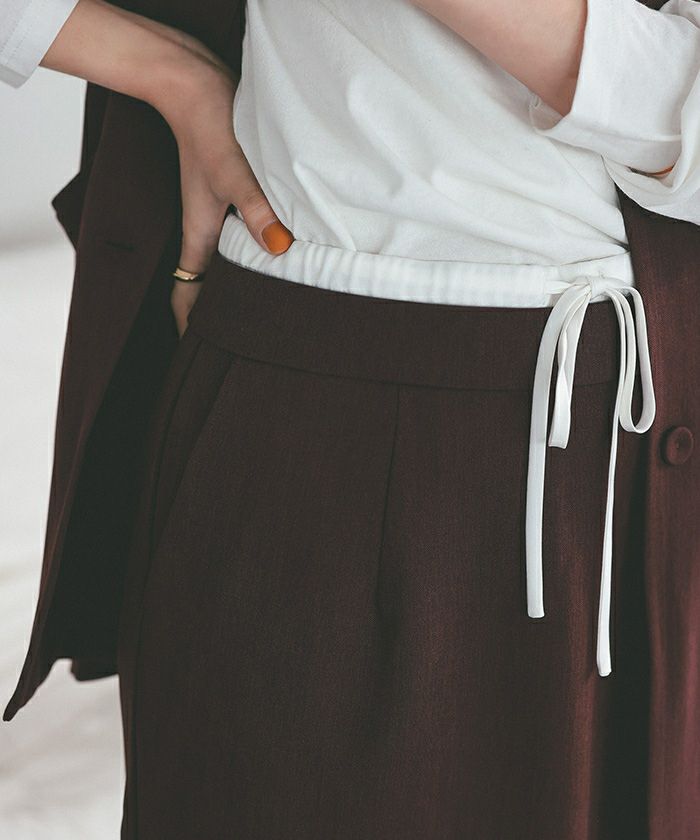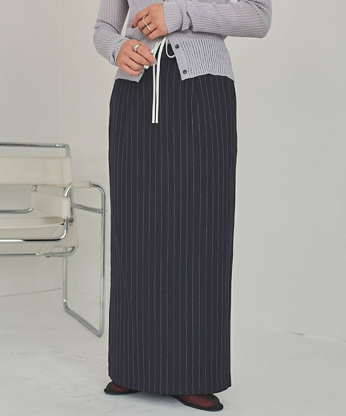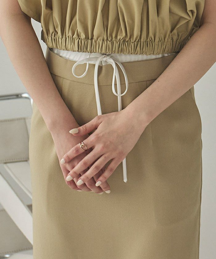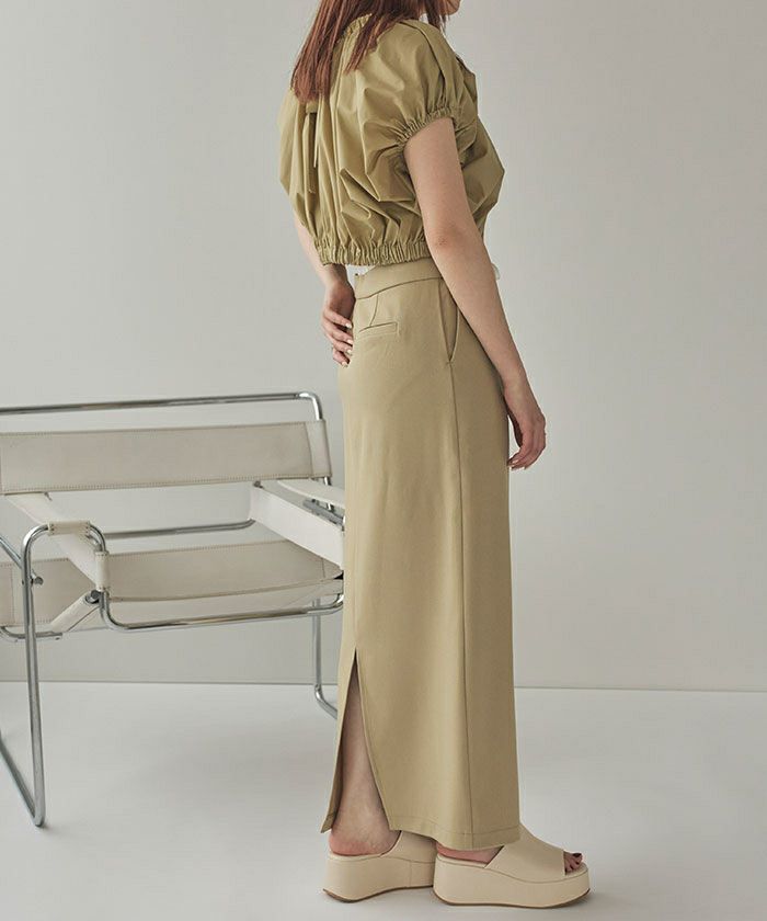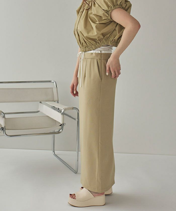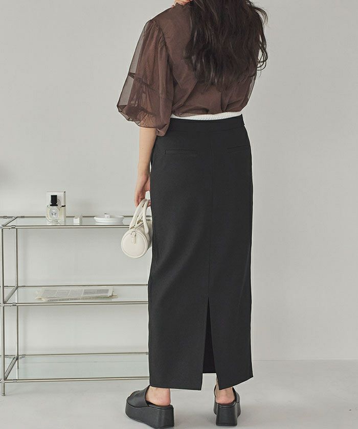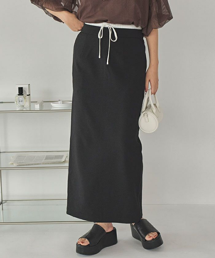 ・トレンド感のあるダブルウエストデザインがコーディネートのアクセントになるタイトシルエットスカート
