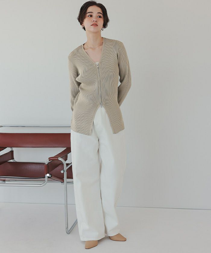 ・ダブルジップアップで開閉できる、ニットとしてもカーディガンとしても着られるアイテム。