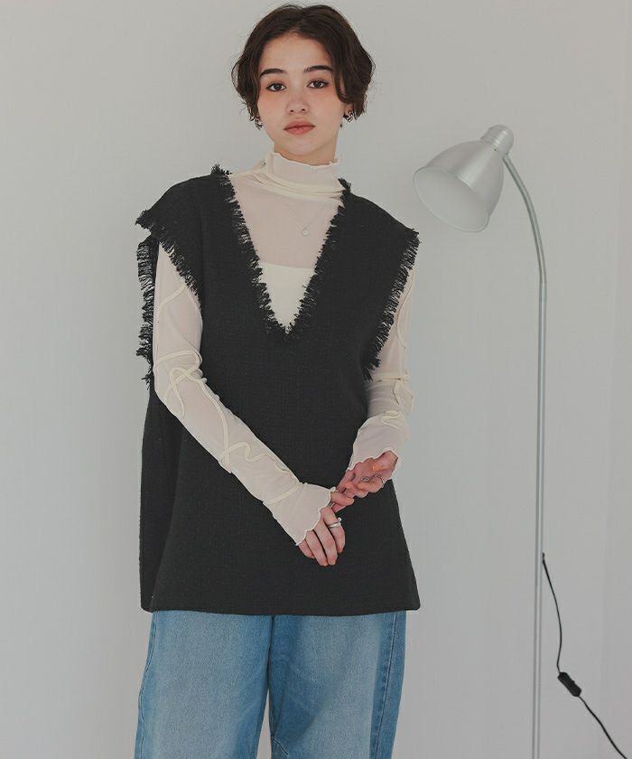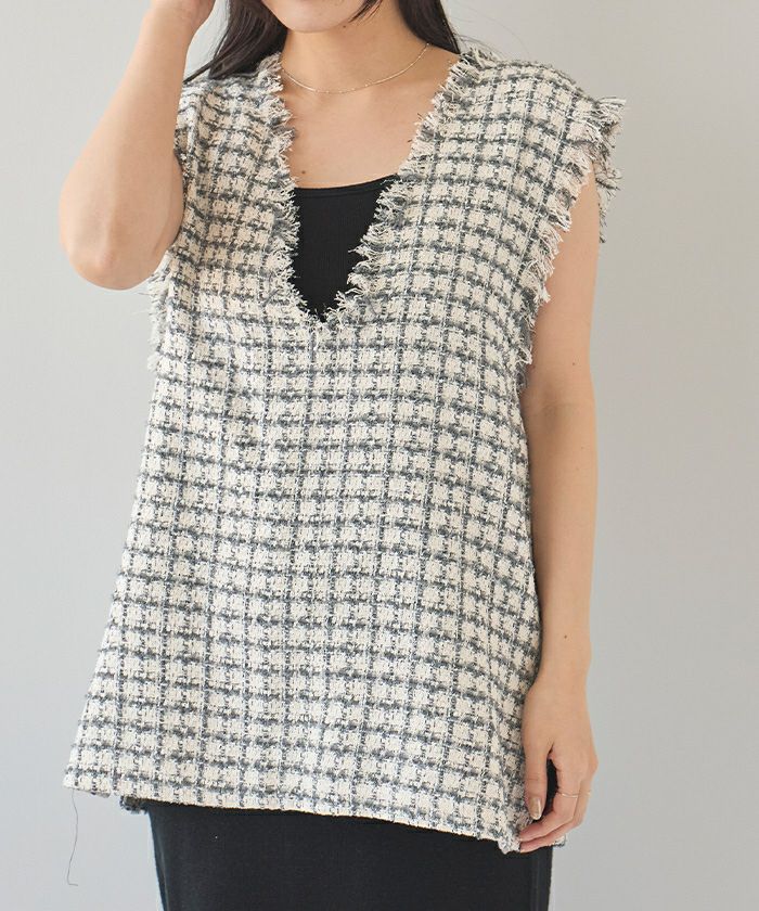 フリンジツイードベスト【メール便可/100】