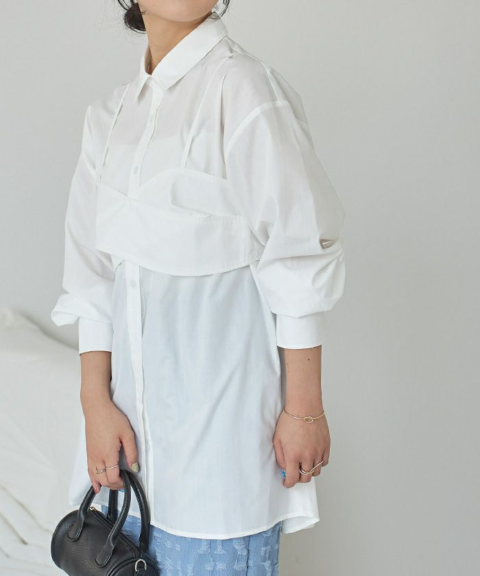 ・シャツとビスチェがセットになった、シンプルだけどまとまりのあるコンビネーションシャツ。