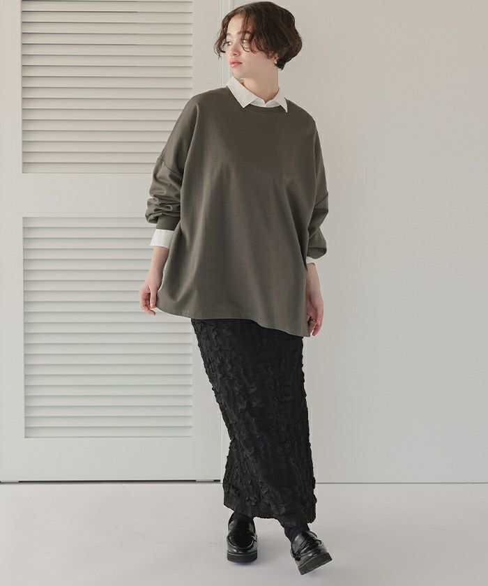 ・淡色でも透けにくく、ボリューミーなシルエットがきれいに見える、程よい厚みのカットソー素材を使用
