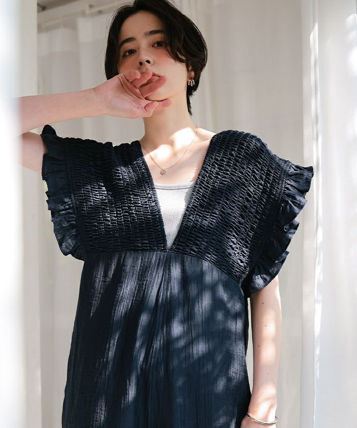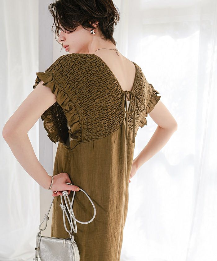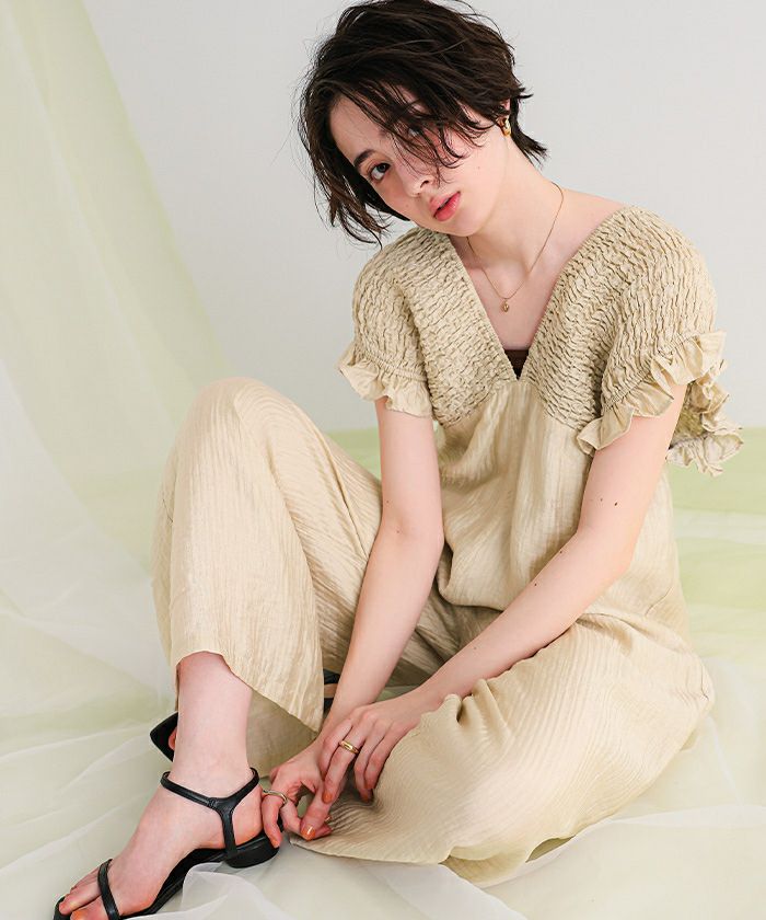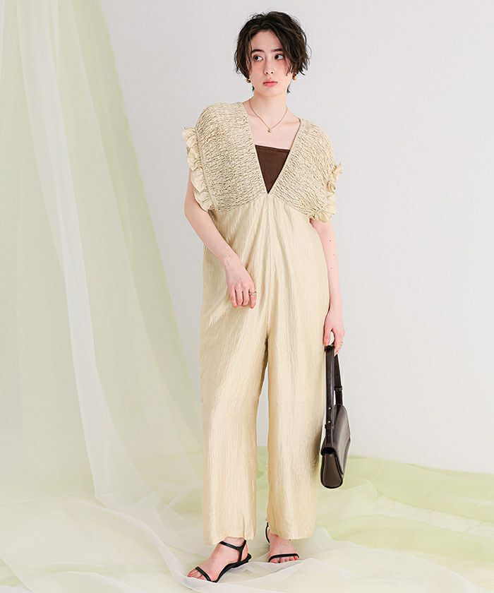シャーリングフリルオールインワン