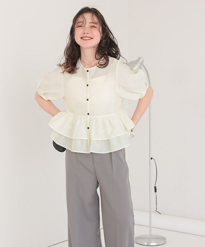 ペプラムショートランタンスリーブブラウス【メール便可/100】