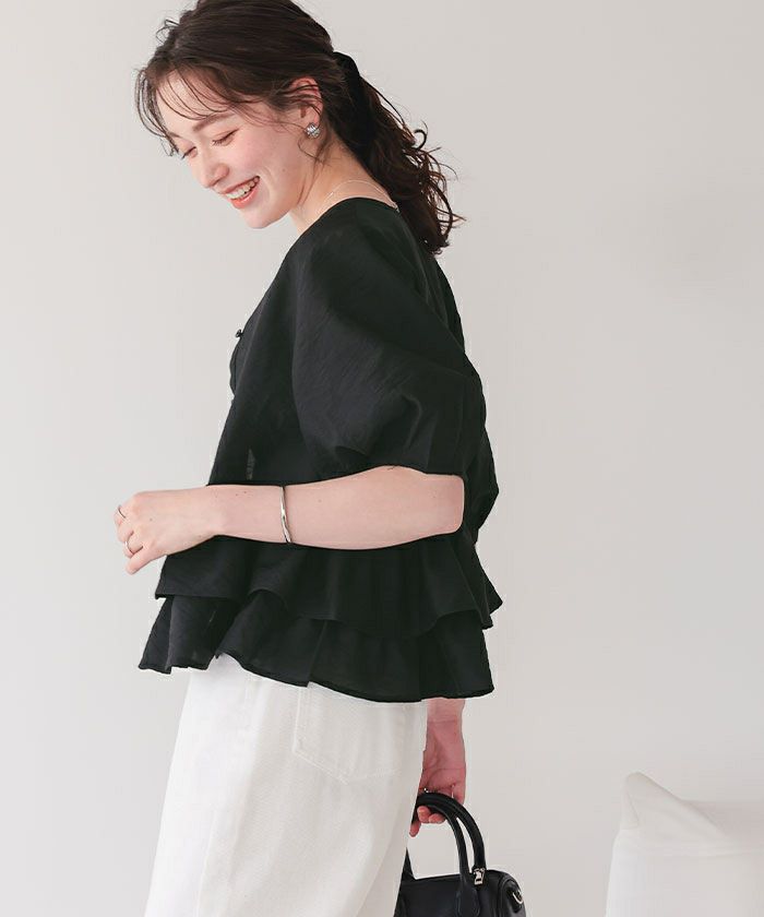 ・上品な、程よく張り感のあるシアー素材で、軽やかな印象のブラウス。