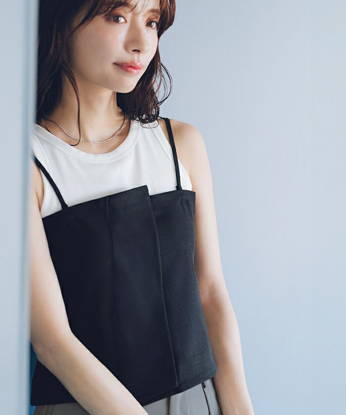 ・構築的な折り返しデザインでコーディネートのポイントになるキャミソールトップス