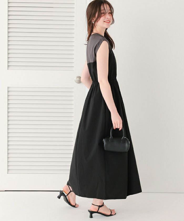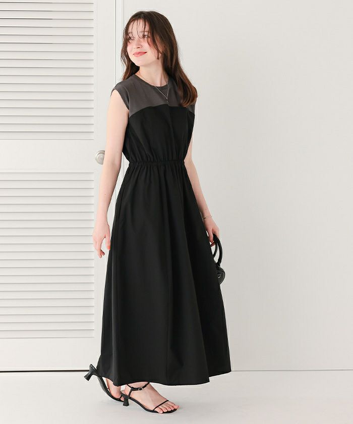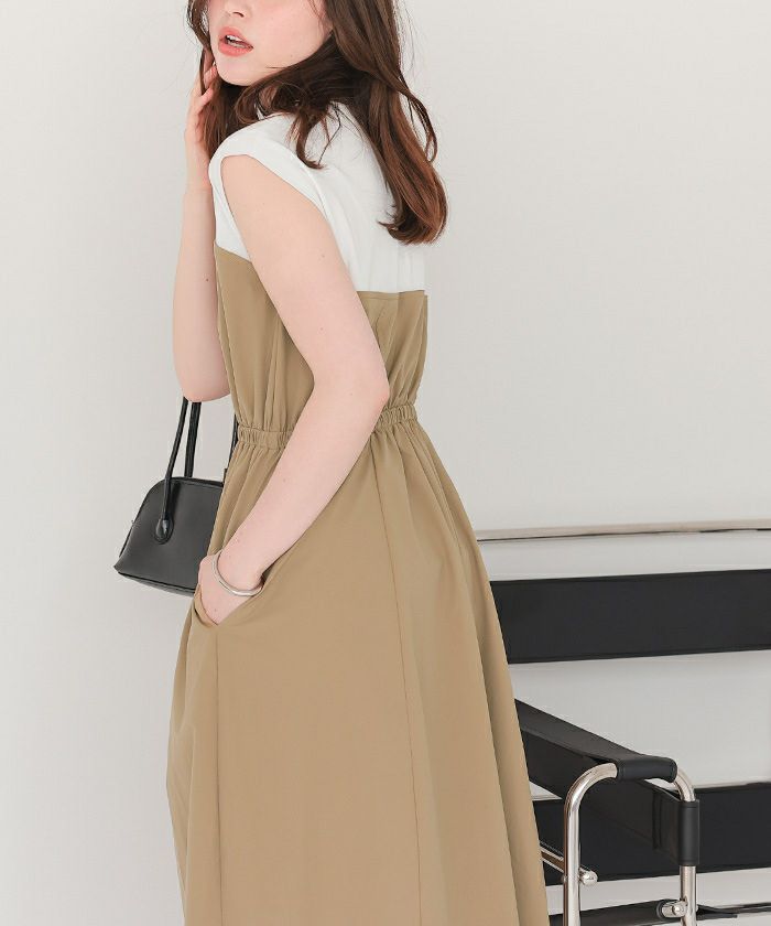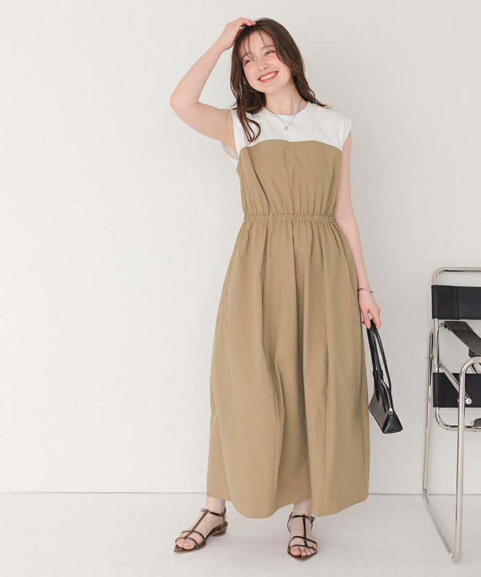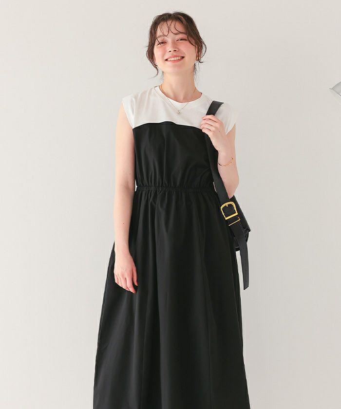 ・カットソー生地と布帛がドッキングされたデザインなので1枚で着映えする