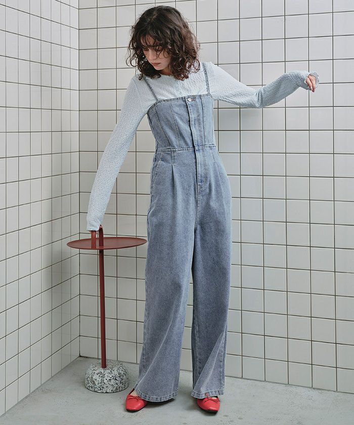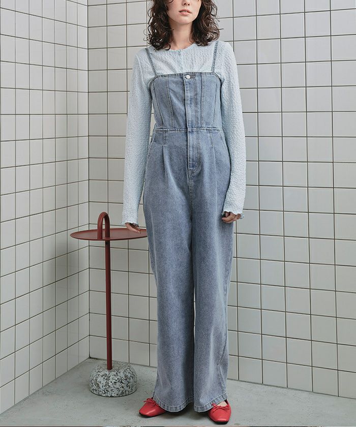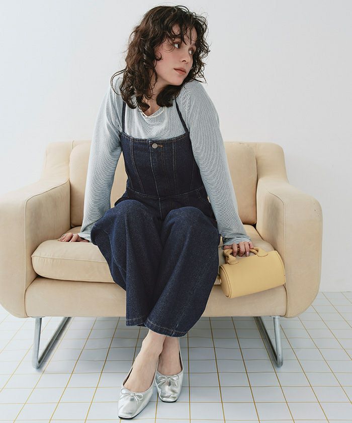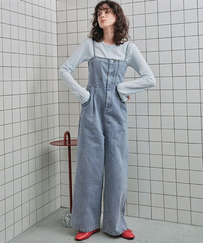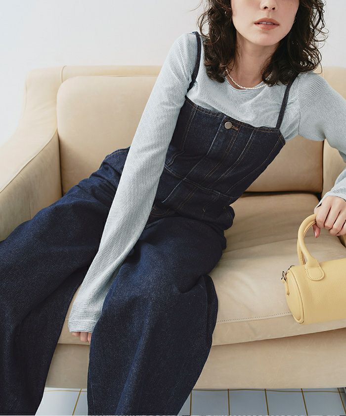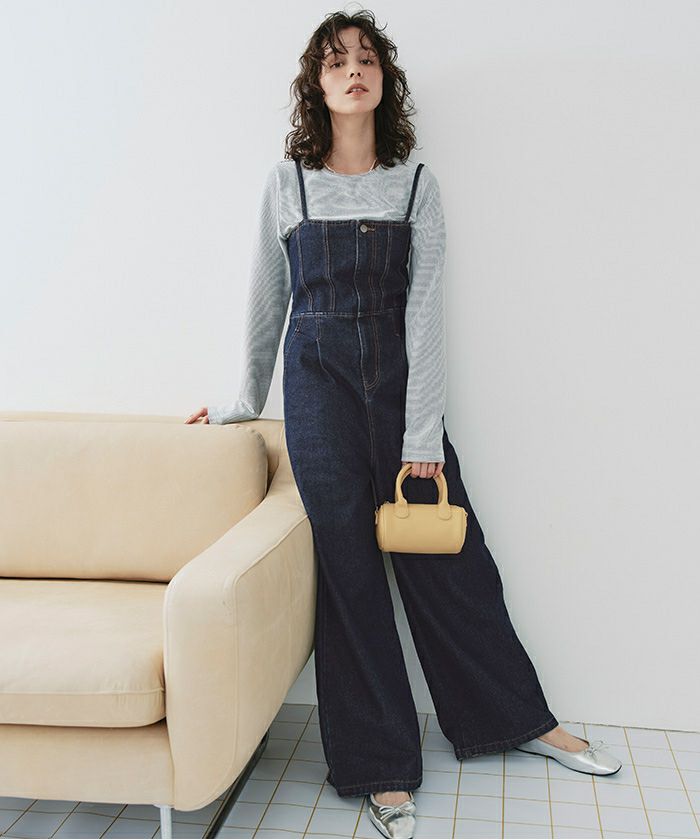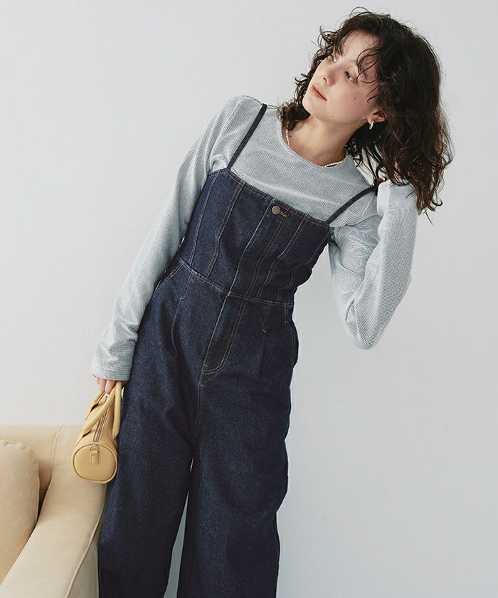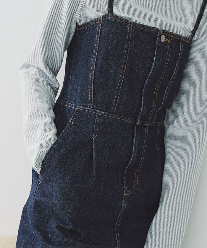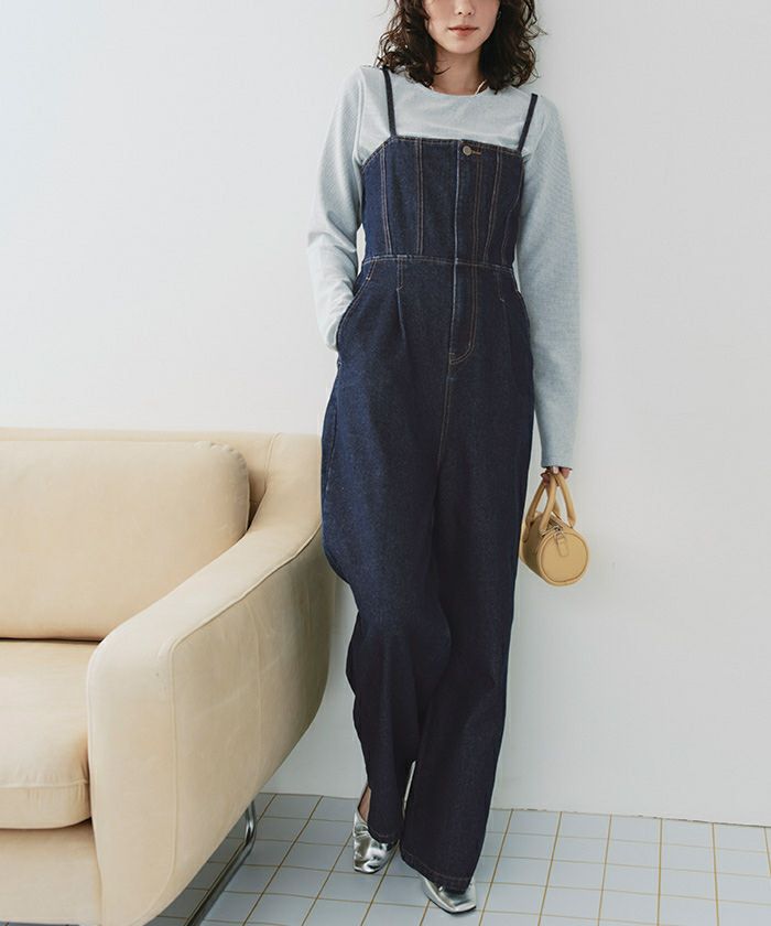 ・ビスチェデザインがトレンド感のあるデニム素材のオールインワン