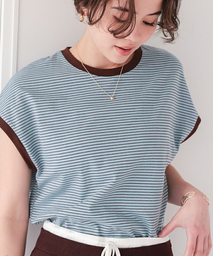 首と袖刳りの配色がお洒落で、ボーダーも細いので、子供っぽくならず着られます。生地も柔らかく着心地が良いです。